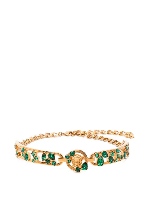 Wear the Versace Medusa emblem around your neck, or choose logo-engraved padlock pendants in our Versace necklaces edit. Designed from signature golden chunky links and crystalized delicate chains, each necklace brings exuberance to your look. Want more? Discover the matching Versace bracelets and earrings.
