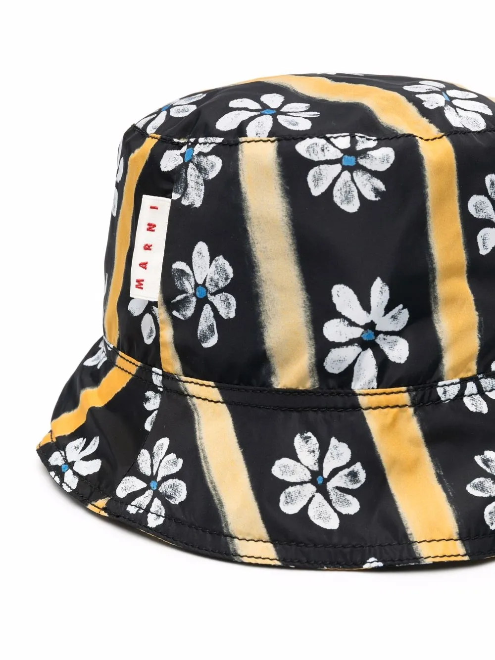 black/multicolour cotton all-over floral print multi-way straps logo patch to the side dropped narrow brim slip-on style