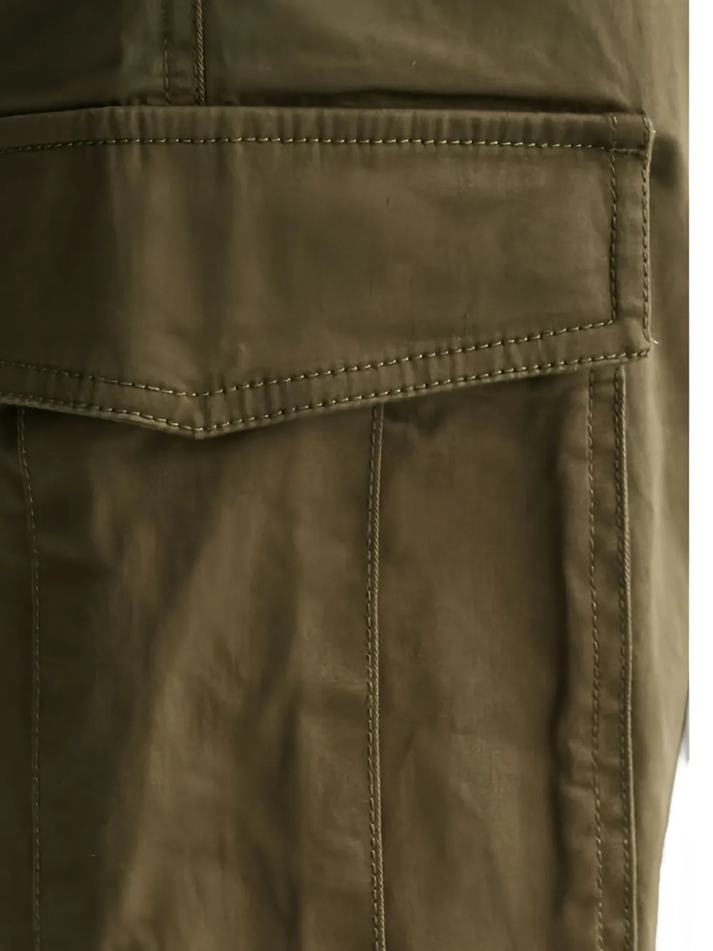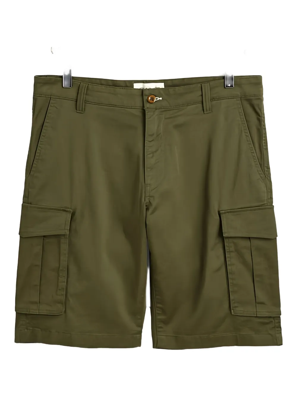 green side cargo pockets belt loops button closure tonal stitching concealed fly