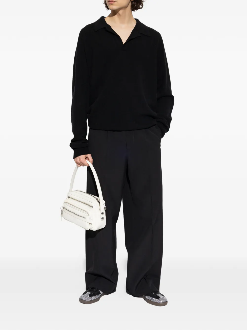 black label on the rear long sleeves collared V-neck