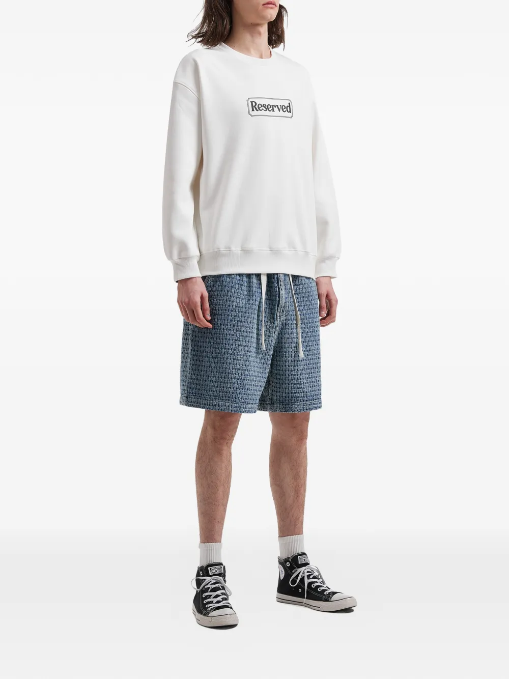 blue patterned drawstring elasticated waistband slip pockets rear patch pocket