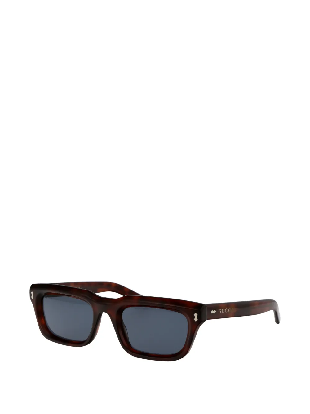 havana brown tortoiseshell effect rectangle frame blue tinted lenses logo-engraved arms silver-tone hardware details These glasses come with a protective case.