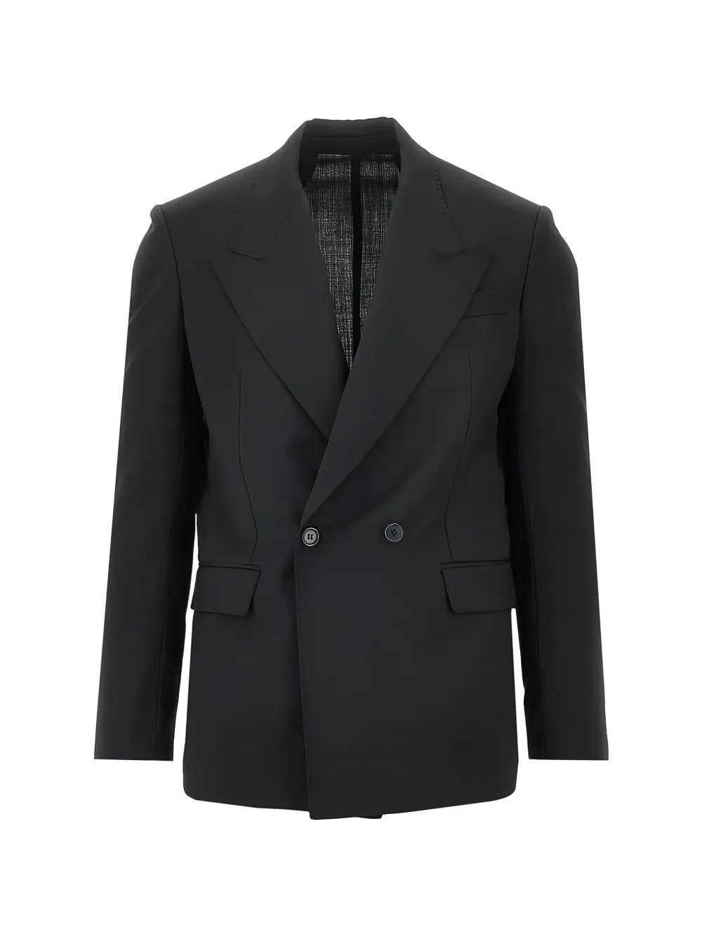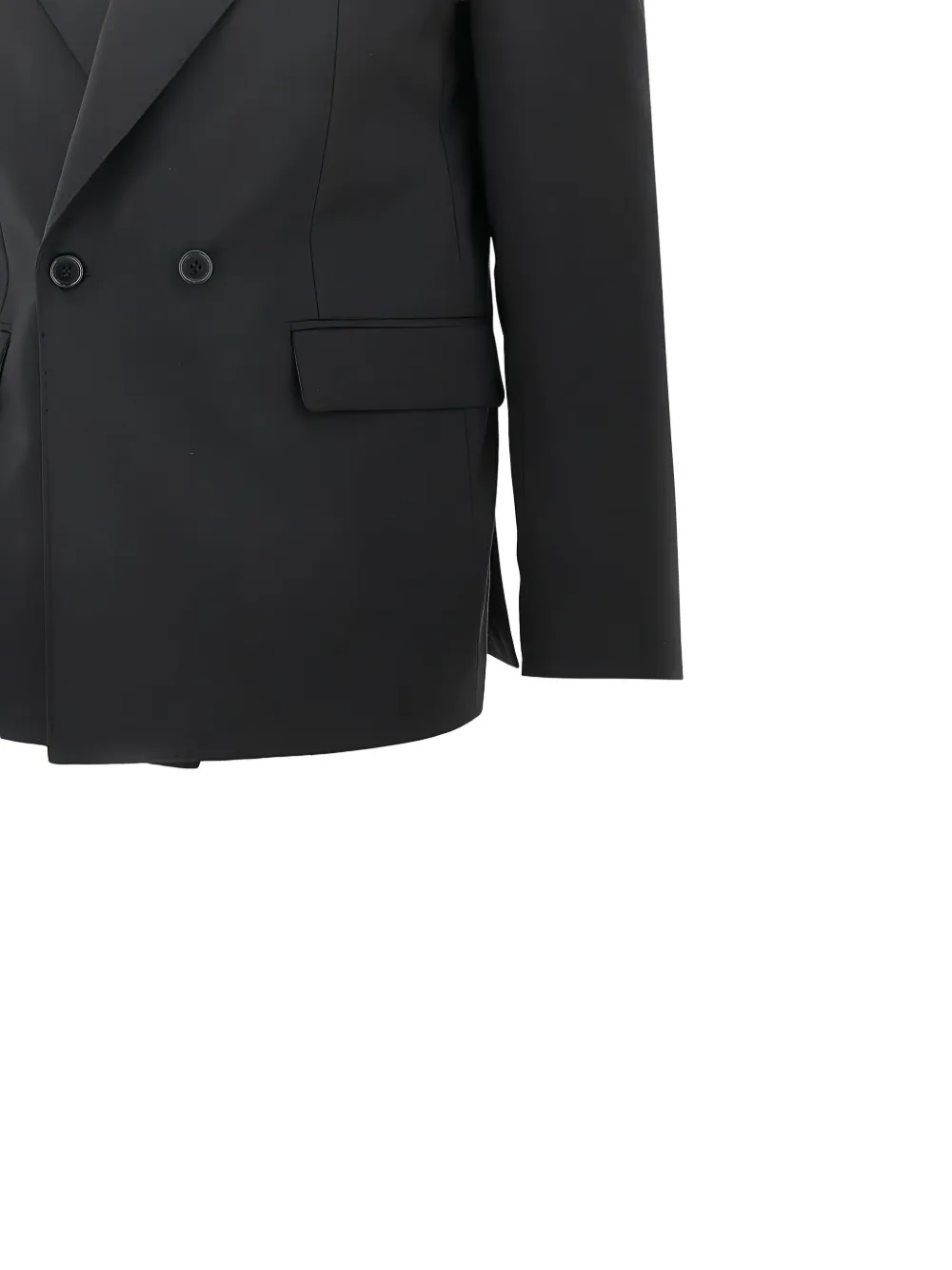 black double-breasted notched lapels flap pockets button fastening