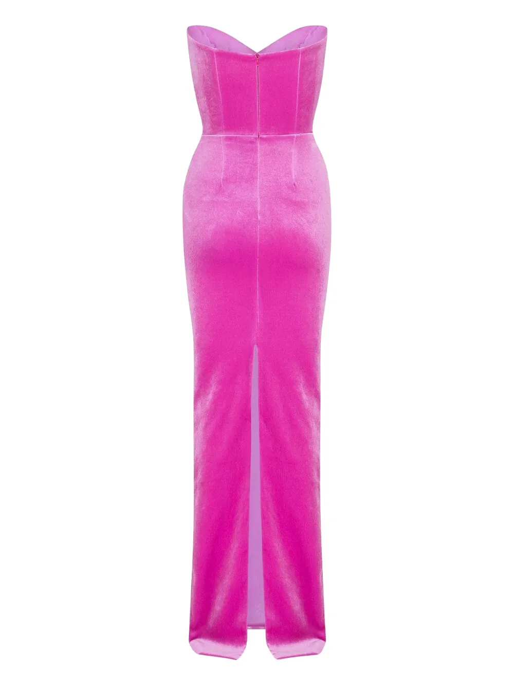 pink strapless twisted detail back split floor-length sweetheart neck