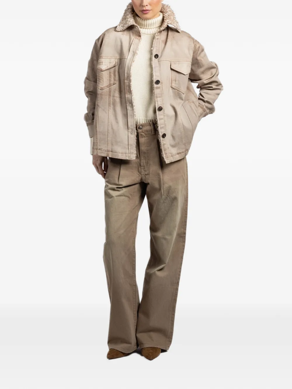taupe textured collar front button fastening chest flap pockets buttoned cuffs