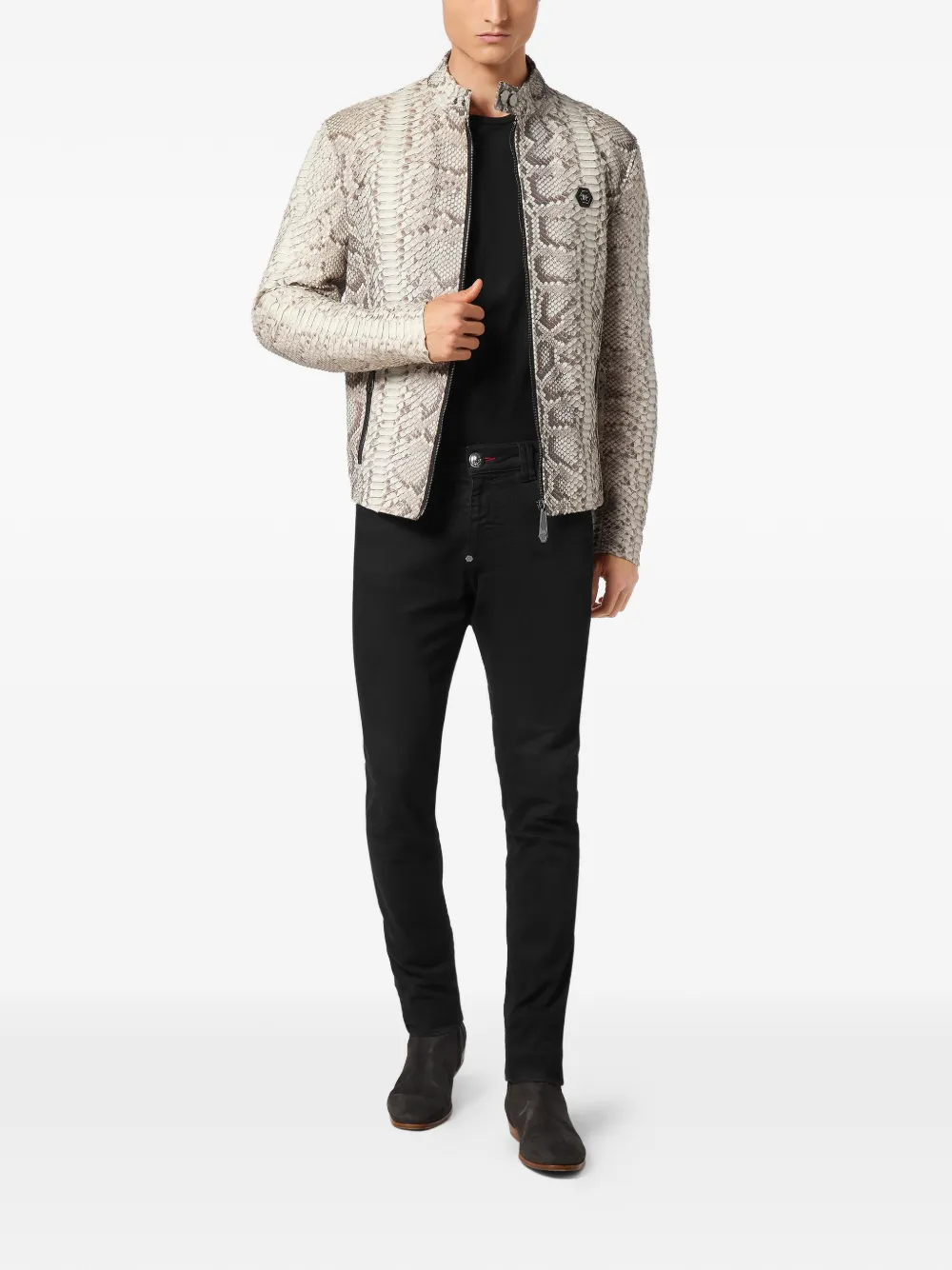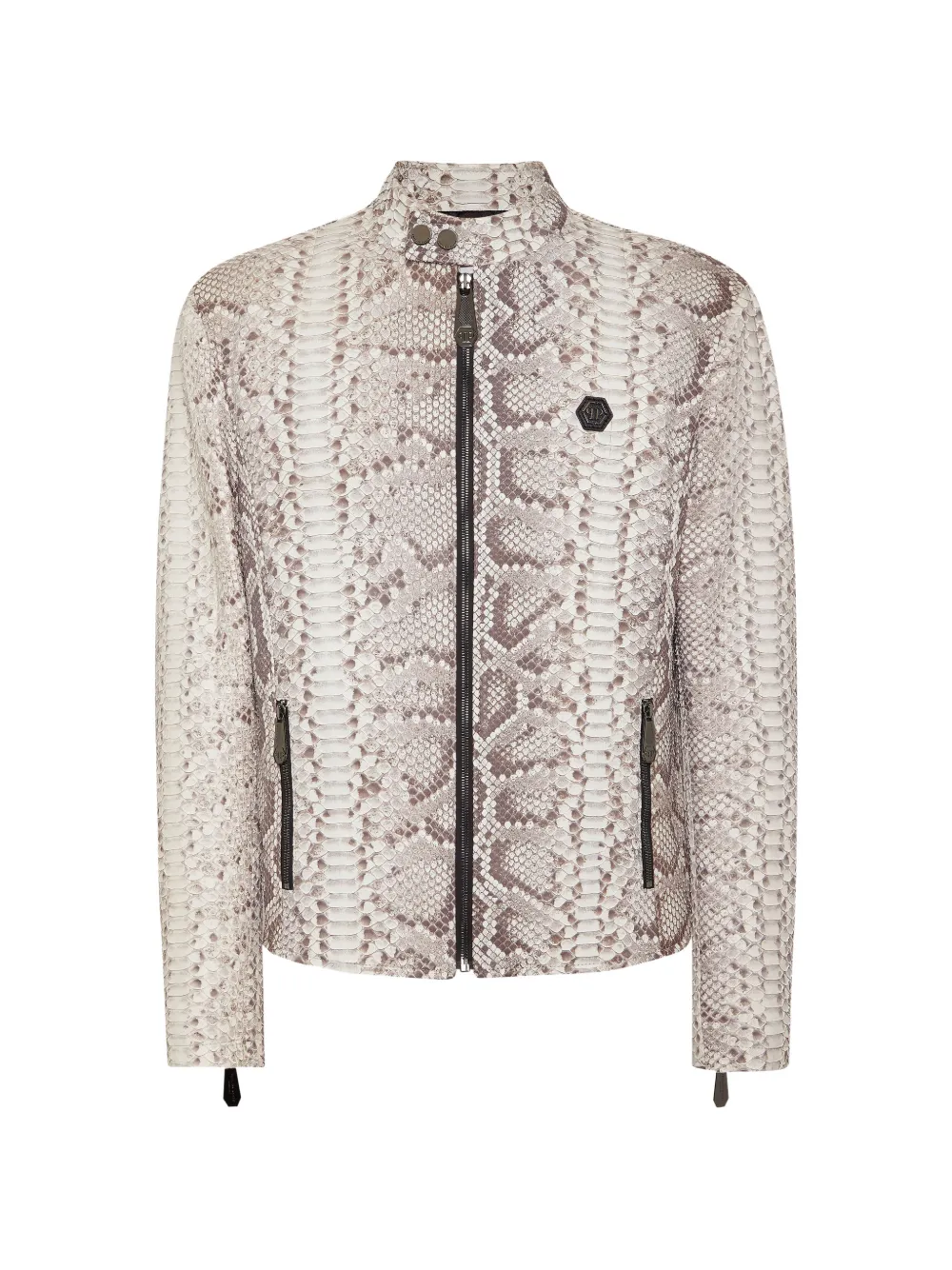 python-leather biker jacket