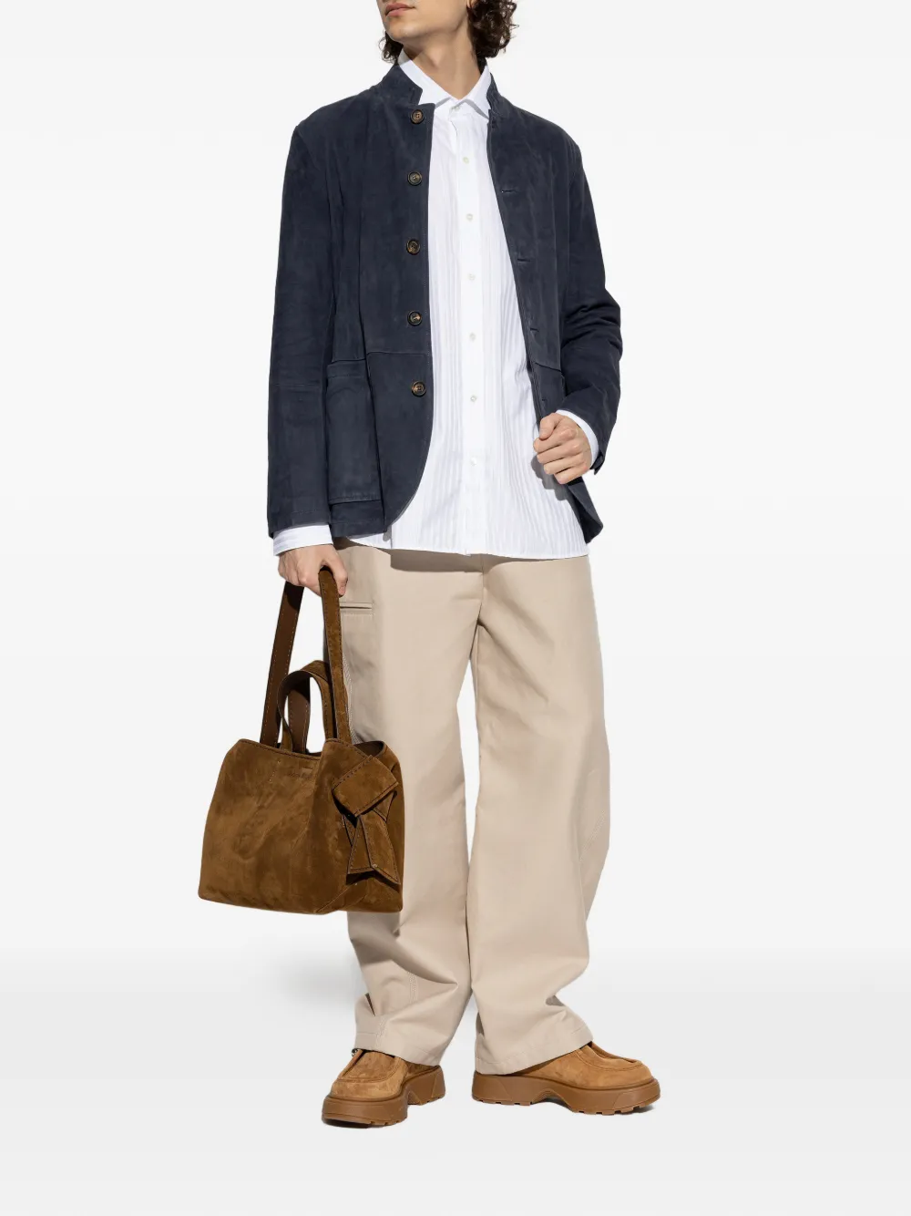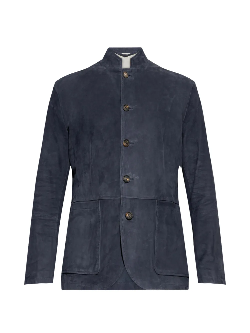 blue stand collar front button fastening front patch pockets long sleeves buttoned cuffs