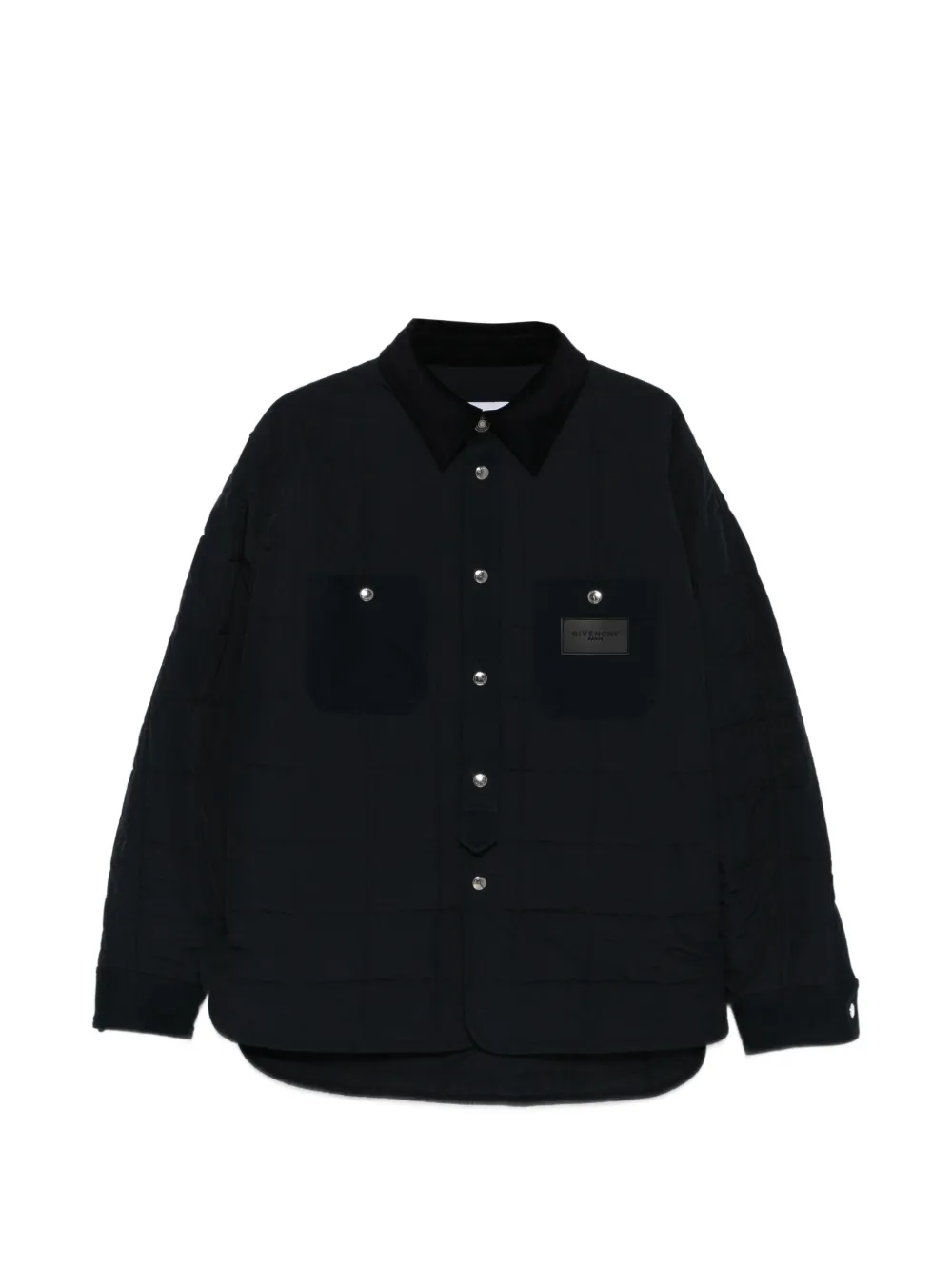 blue button fastening chest pockets corduroy collar logo patch
