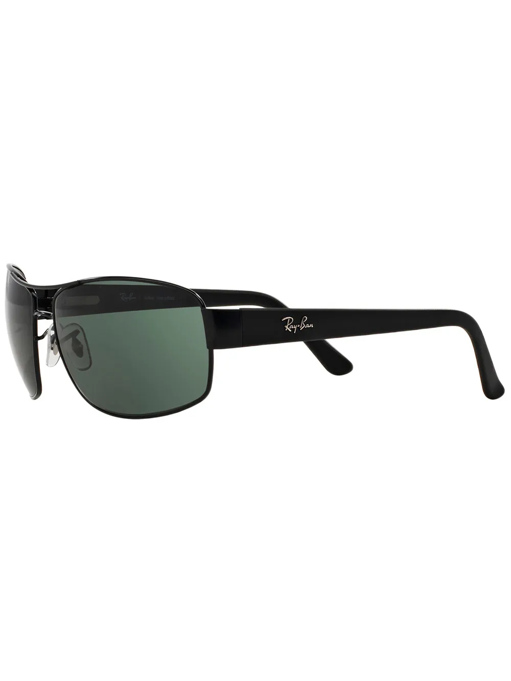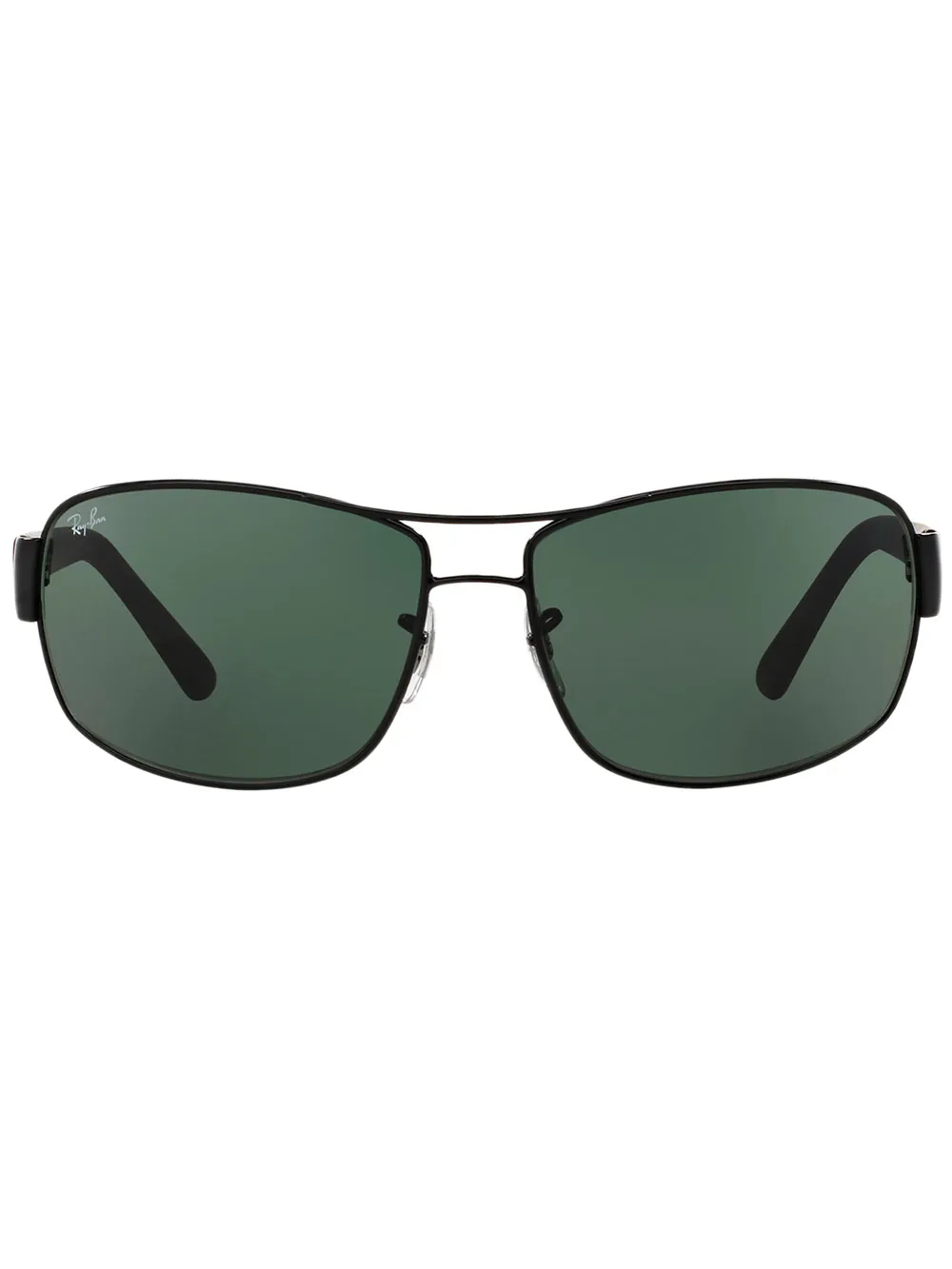 Óculos de sol retangular preto, Ray Ban. Com lentes retangulares, hastes médias e ponte dupla.
