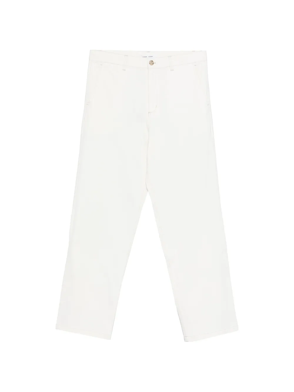 cream button fastening belt loops side pockets back pockets tonal stitching