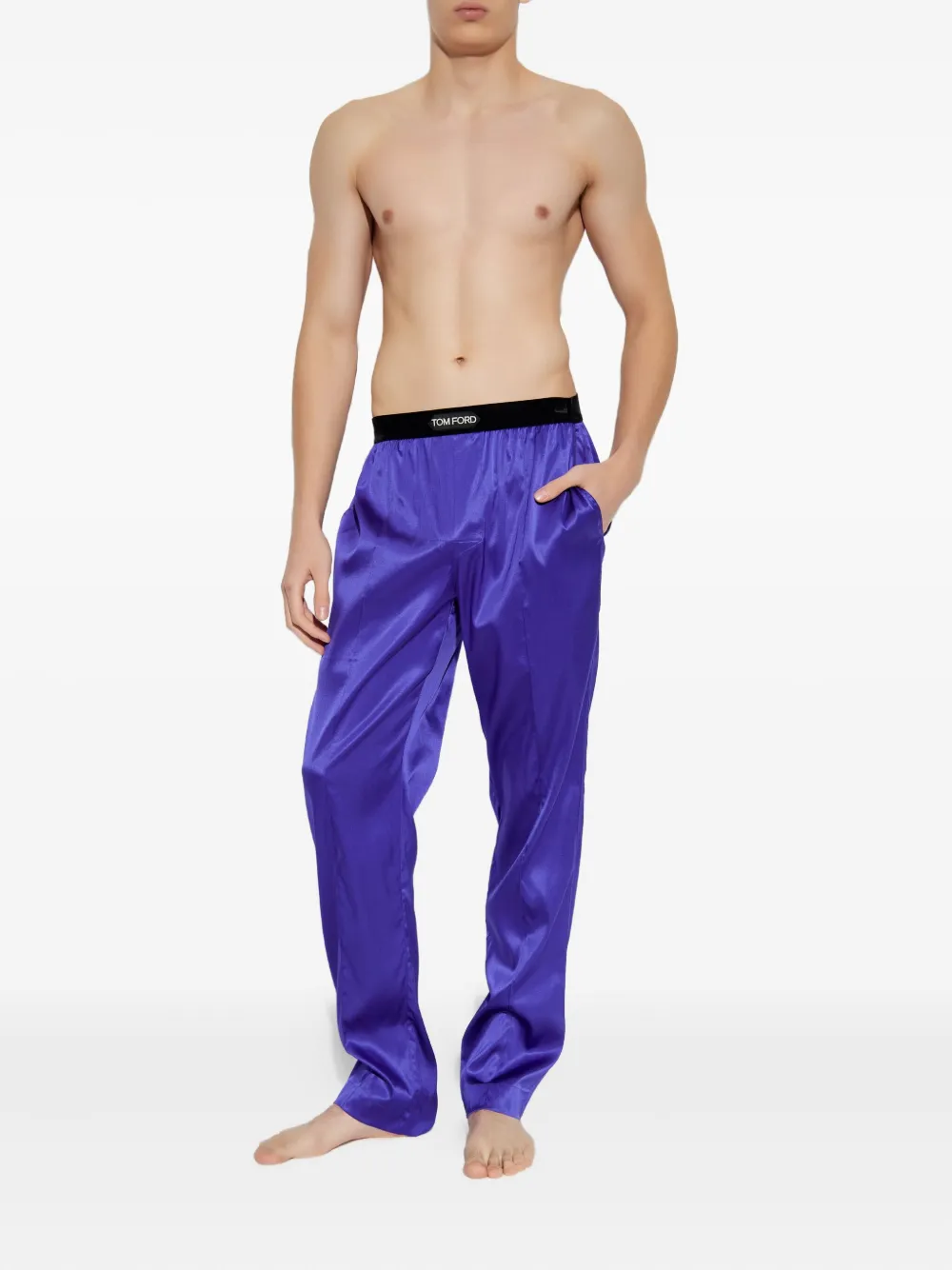 Calça de pijama em seda com logo no cós