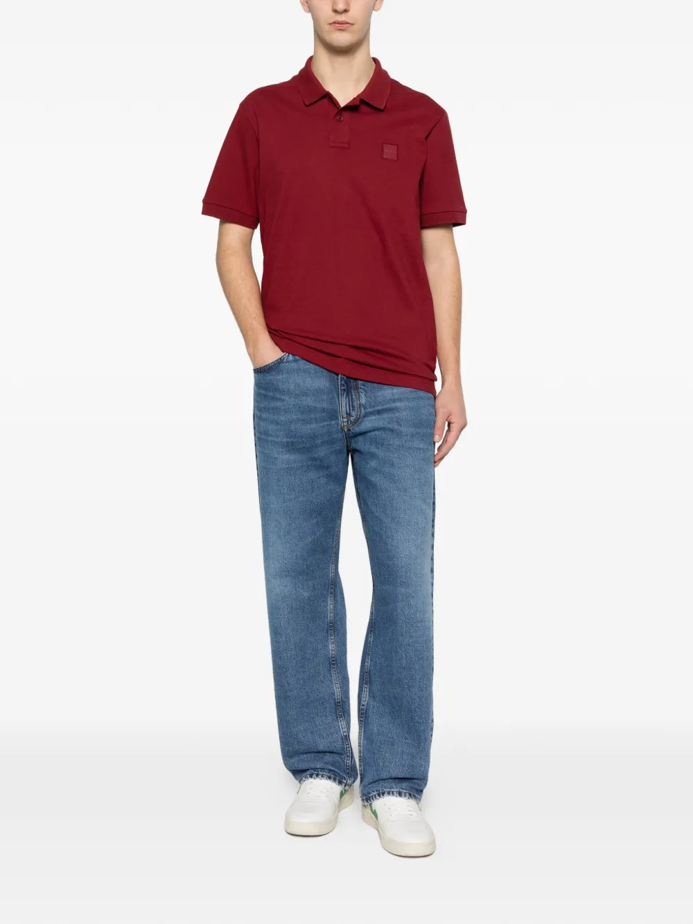 buttoned patch polo shirt