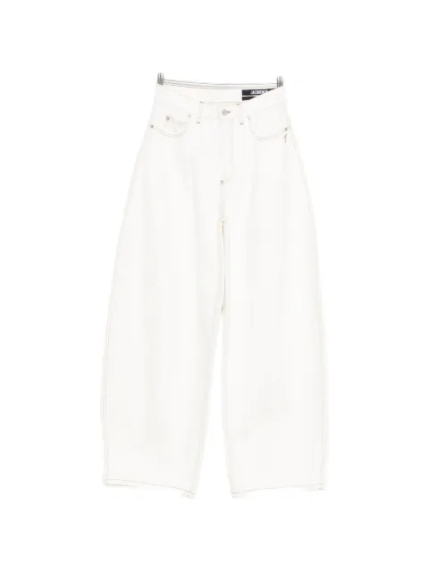 Hailing from the South of France, Jacquemus jeans are dedicated to the city of Nîmes — the birthplace of denim. High rise, paneled, wide-leg jeans for women are a typical theme, offering a more relaxed take on structured denim. Look out for asymmetric flap details at the waistline in true Jacquemus style, and match with Le Chiquiti mini bag for the ultimate playful contrast.