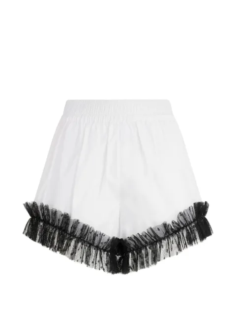 An antithesis to the ‘jorts’ trend, designer short shorts are defined by ultra-cropped lengths. Recalling the silhouette of Miu Miu micro miniskirts, wool shorts are cut to cropped hemlines and complete with frayed hems. ZIMMERMANN belted shorts are crafted from linen or silk and decorated with colorful floral patterns, while Alexander Wang updates classic denim cut-offs with a grunge-inspired edge. Spot the Crescent Moon motif adorning Marine Serre track shorts.