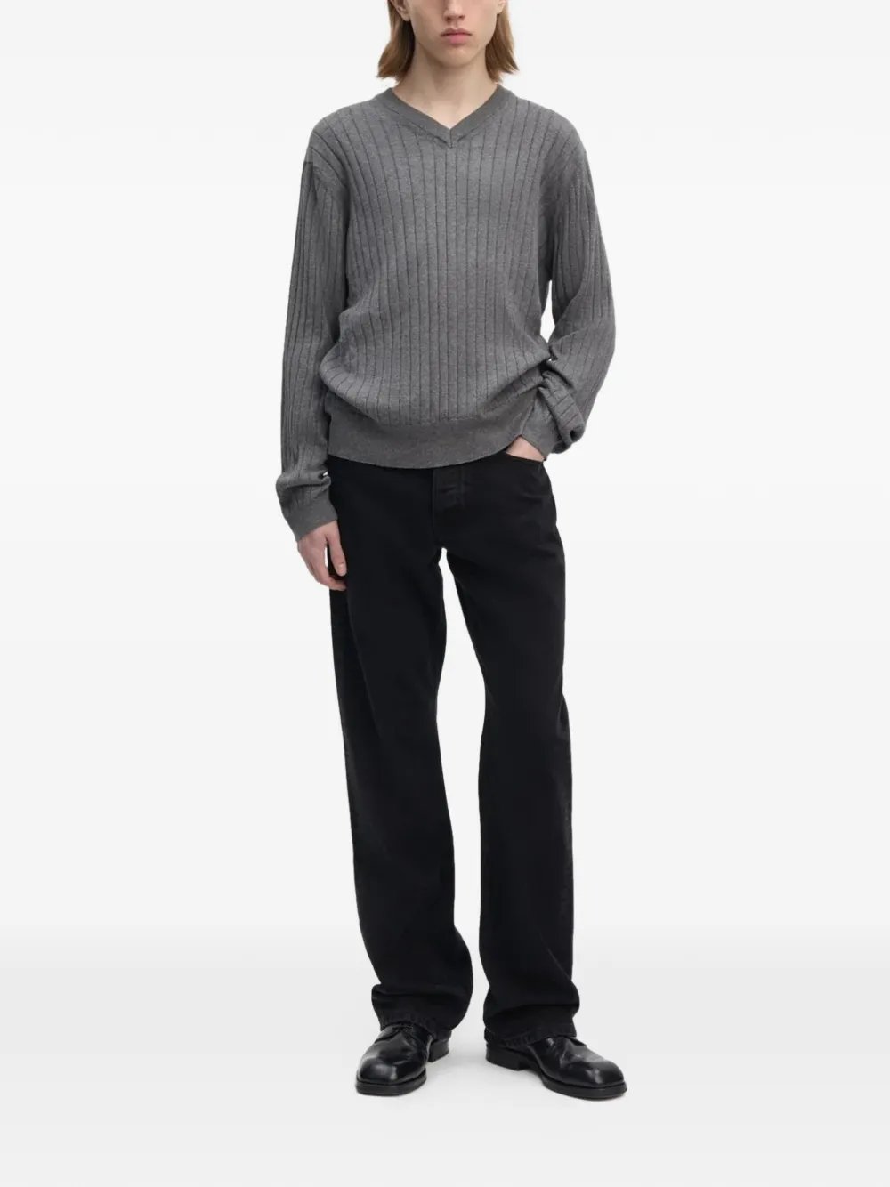 pull côtelé à col v