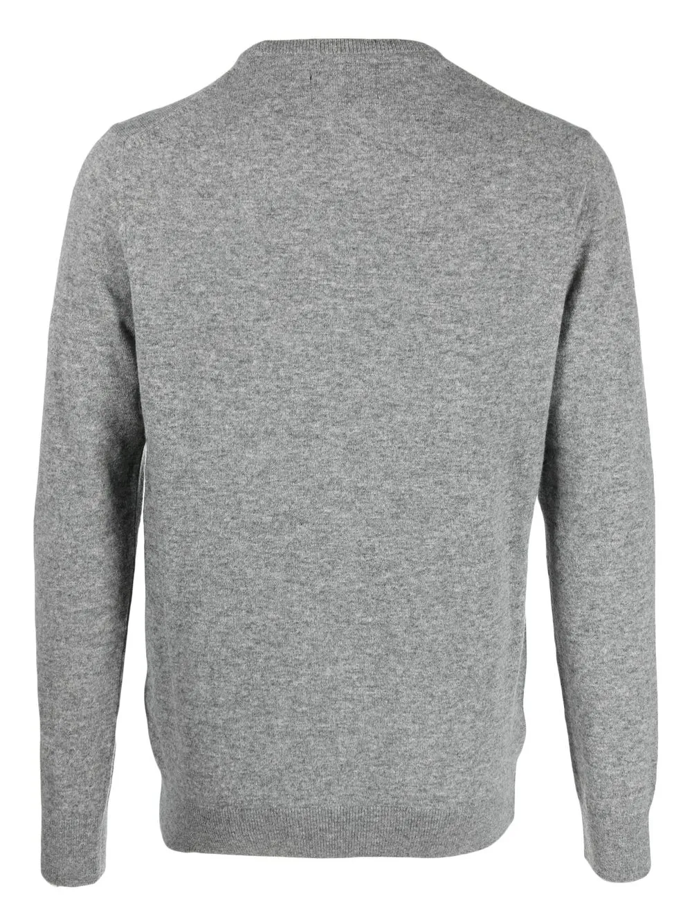 Gris, laine, maille fine, finitions nervurées, logo brodé sur la poitrine, encolure ras du cou, manches longues, ourlet droit.