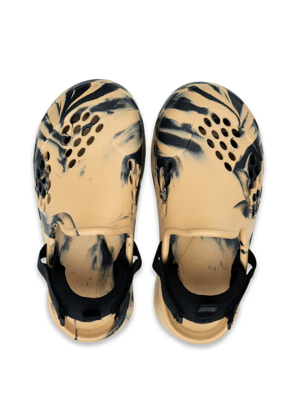 beige and black marble effect perforated detailing touch-strap fastening round toe pull-tab at the heel ridged rubber sole