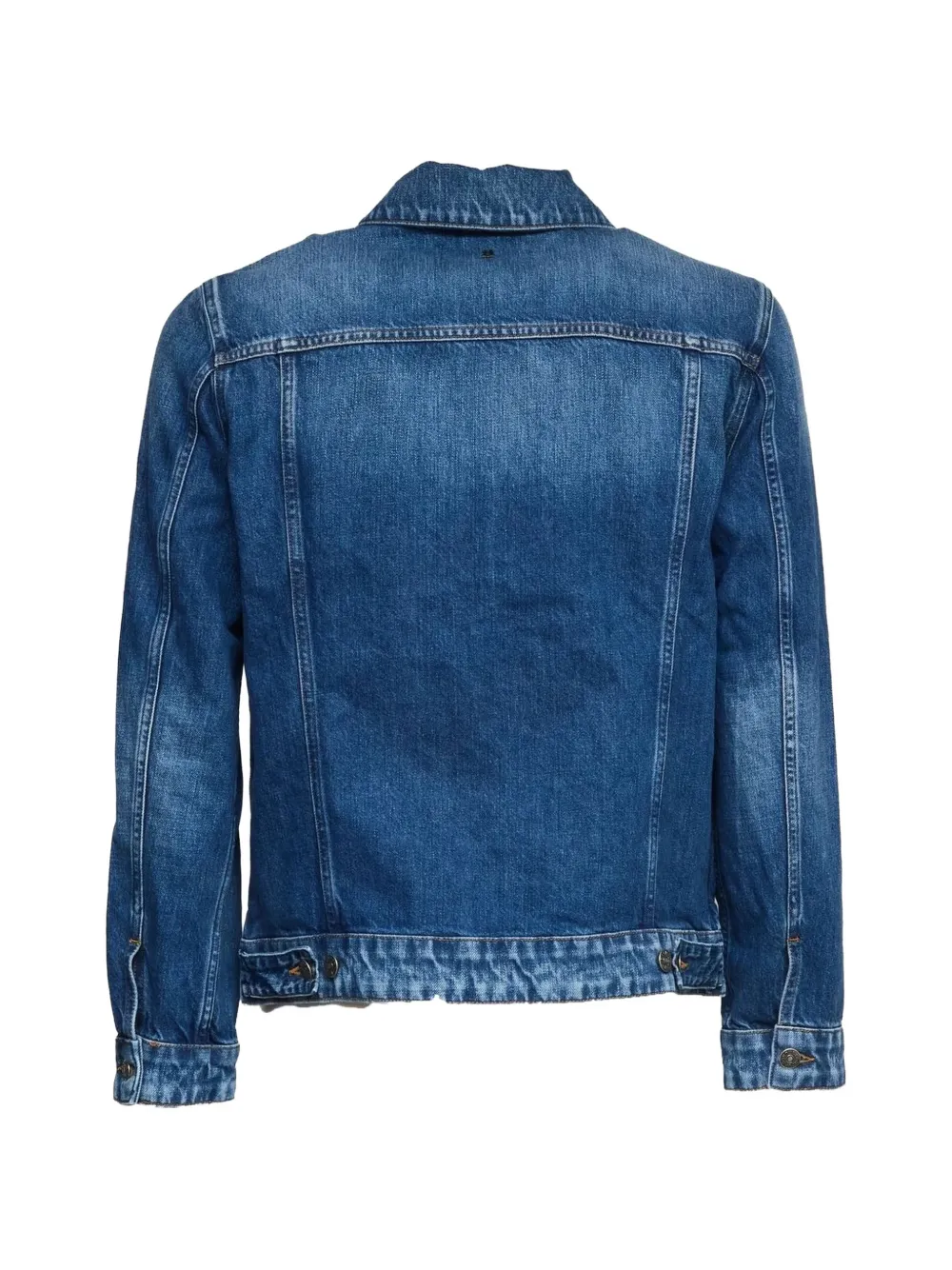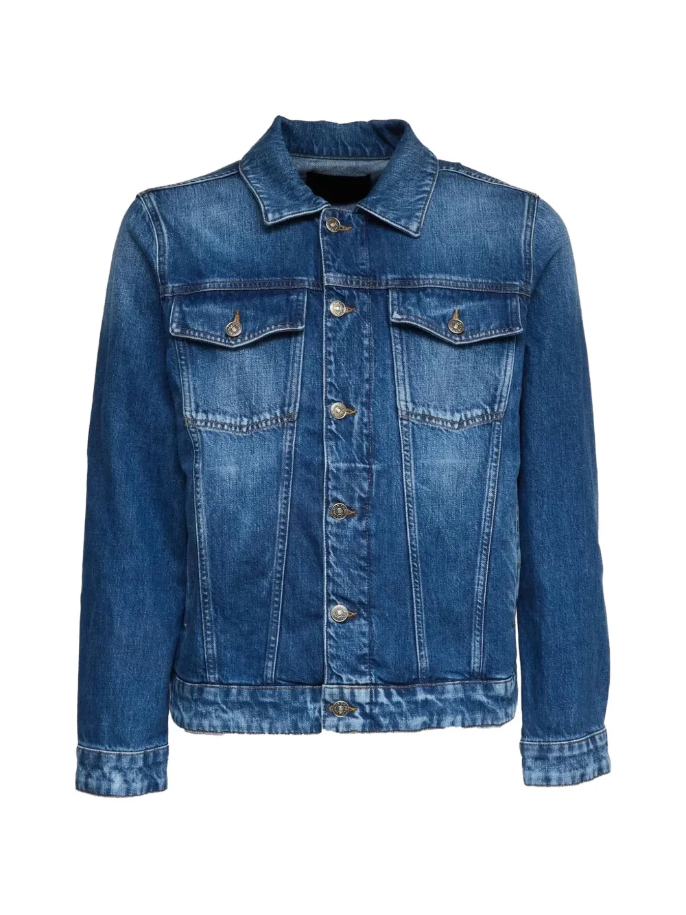 blue button fastening chest flap pockets button adjustable hem classic collar