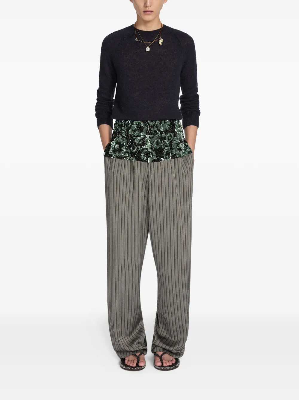 pantalon rayé à sequins