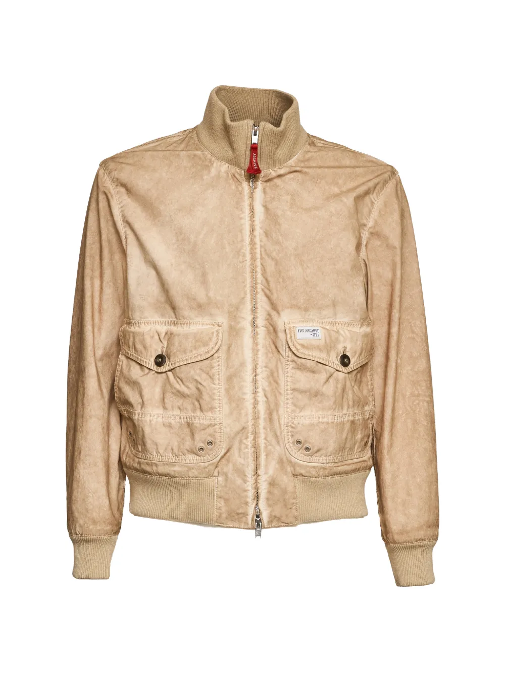 beige stone-washed effect front zip fastening high neck long sleeves ribbed collar, cuffs and hem two front button-fastening pockets logo patch to the front regular fit