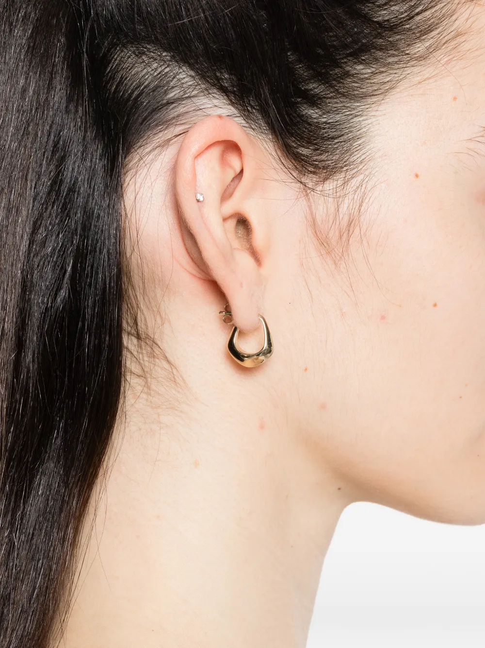 gold-tone polished finish post-back fastening Your jewellery should be the last thing that you put on in the morning and first thing you take off at night. Avoid wearing in the shower or when spraying perfume, and clean occasionally with a soft polishing cloth. This is a single earring.
