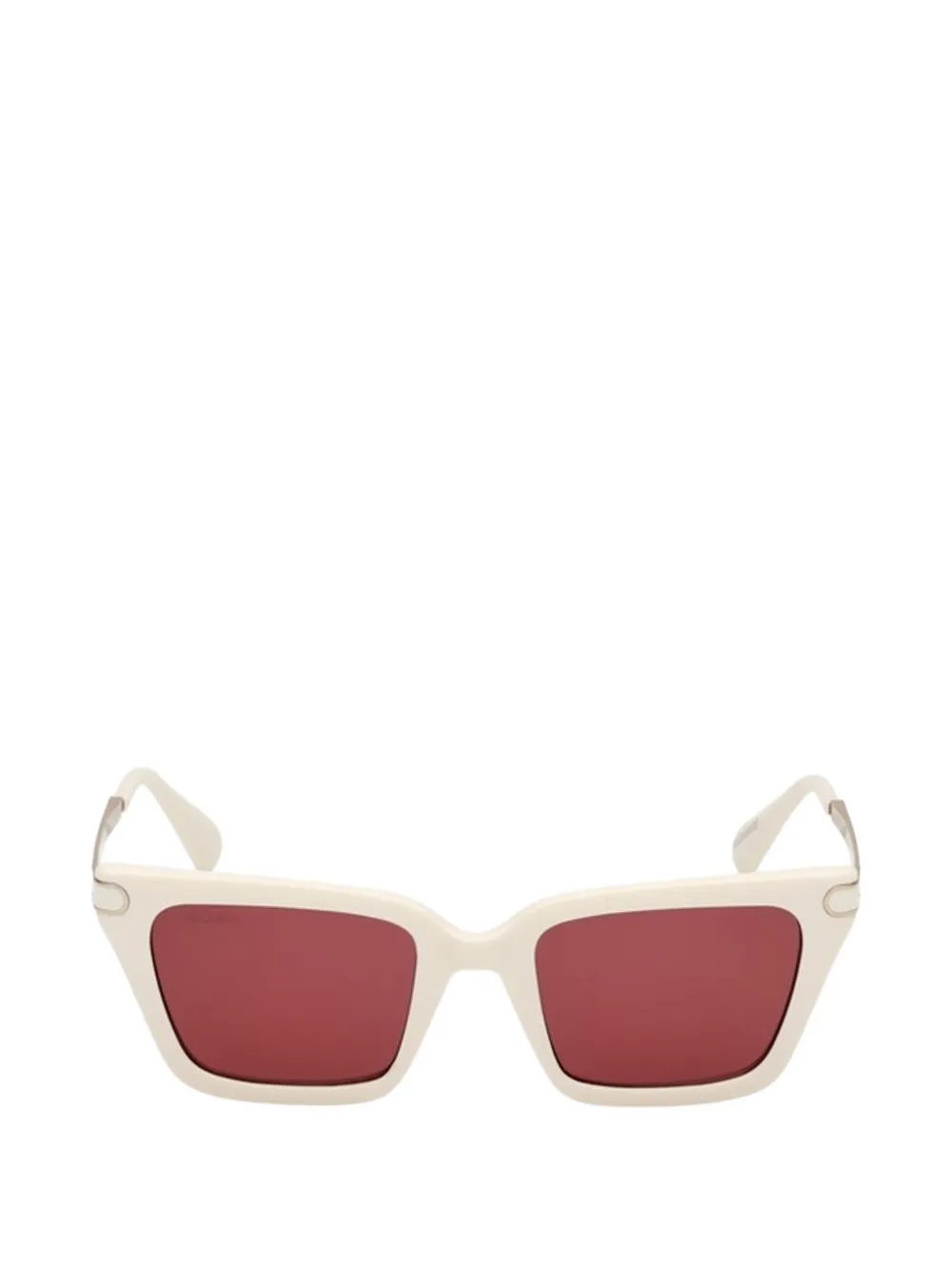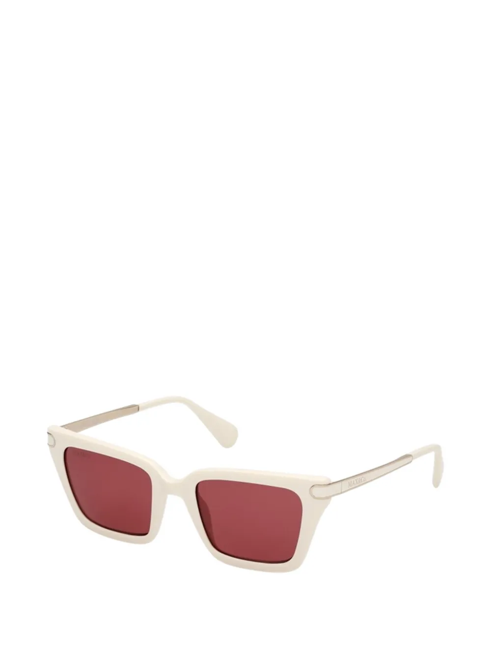 white rectangle frame bordeaux-tinted lenses logo-engraved arms gold-tone hardware curved tips These glasses come with a protective case.