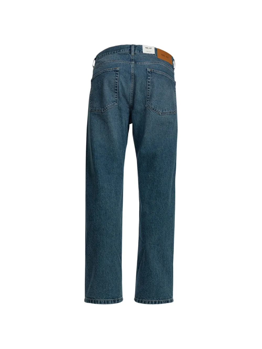 blue cotton logo patch belt loops button fly fastening five pockets regular fit
