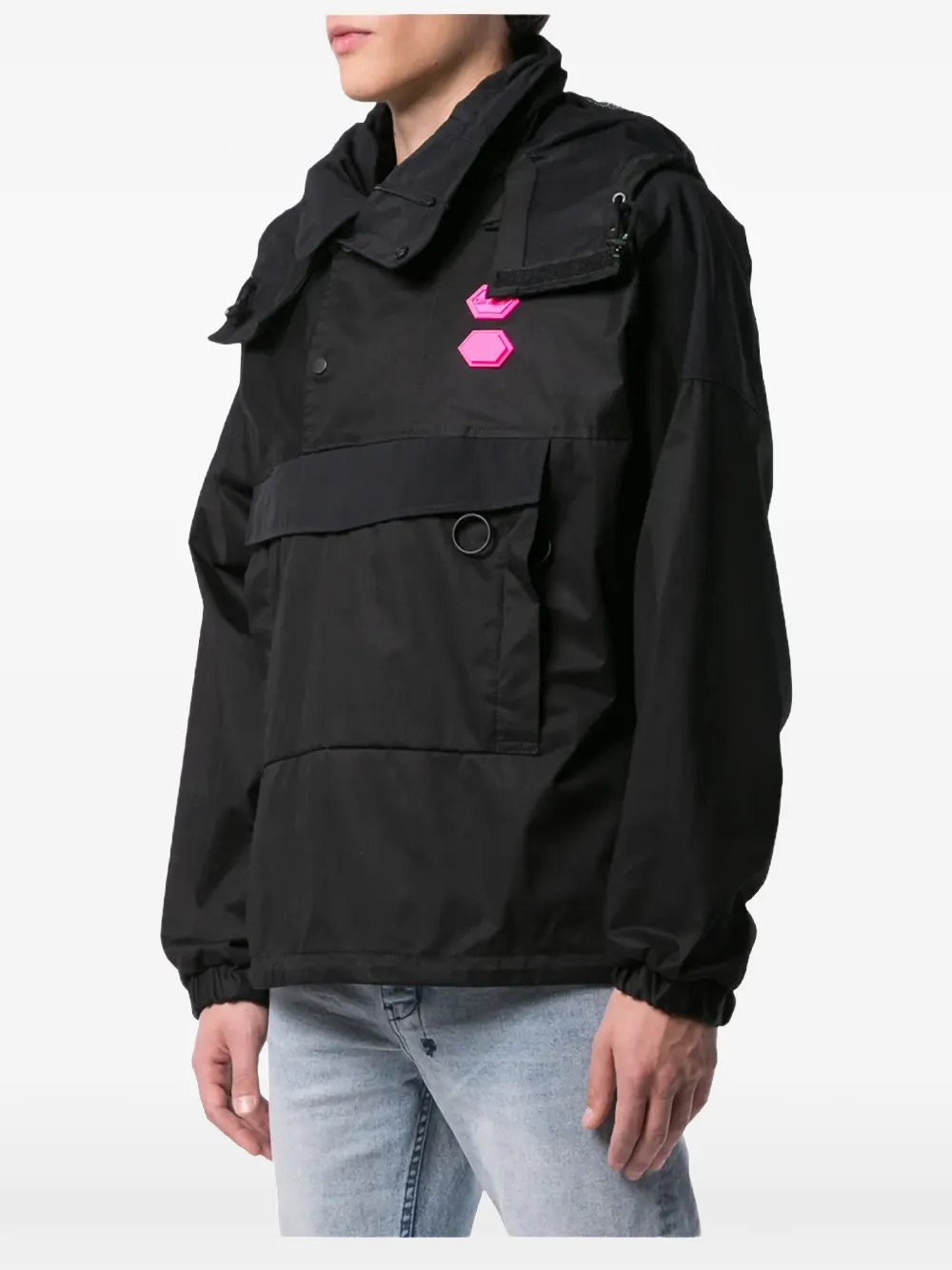 Coupe-vent à capuche en cotton blend Off-White avec poche devant dissimulée, poignets élastiqués et design waterproof. Couleur : noir.
