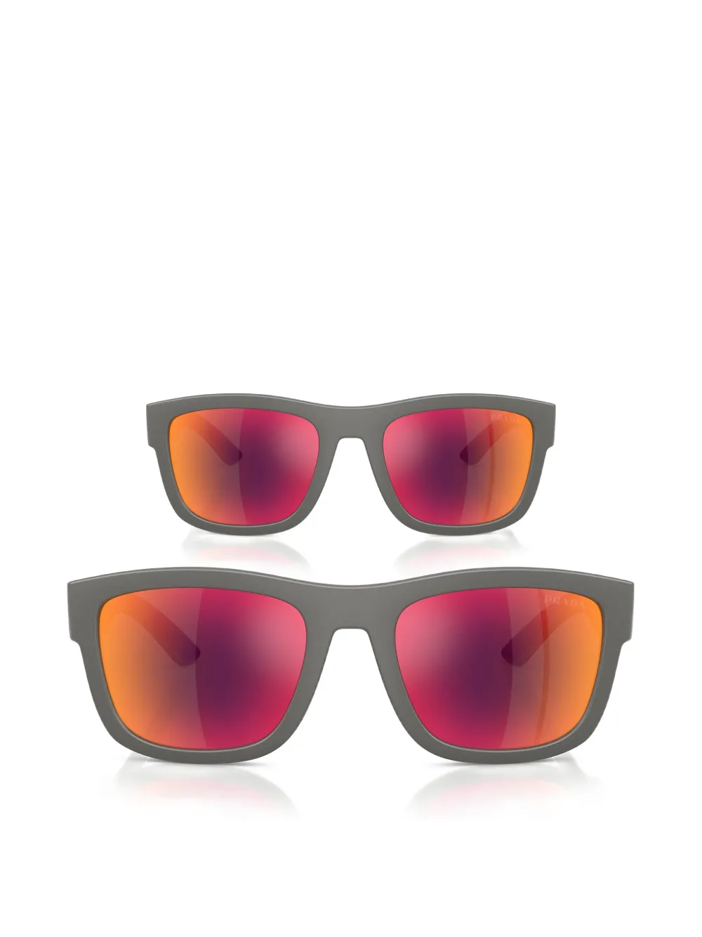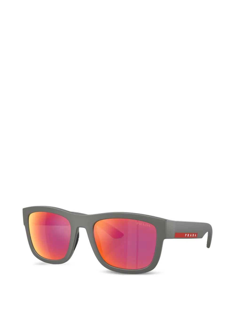 grey rectangle frame mirrored lenses curved tips These glasses come with a protective case.
