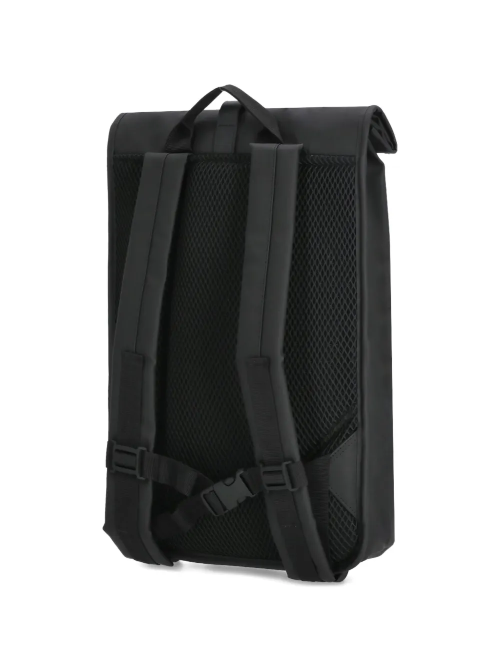 black waterproof fabric top handle adjustable shoulder straps front zip pocket imprinted logo