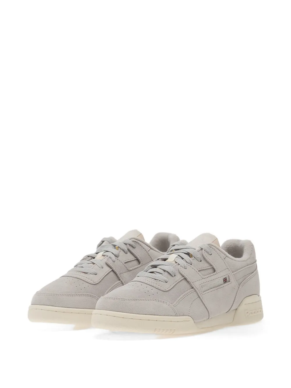 grey perforated toebox front lace-up fastening round toe logo patch to the side rubber sole