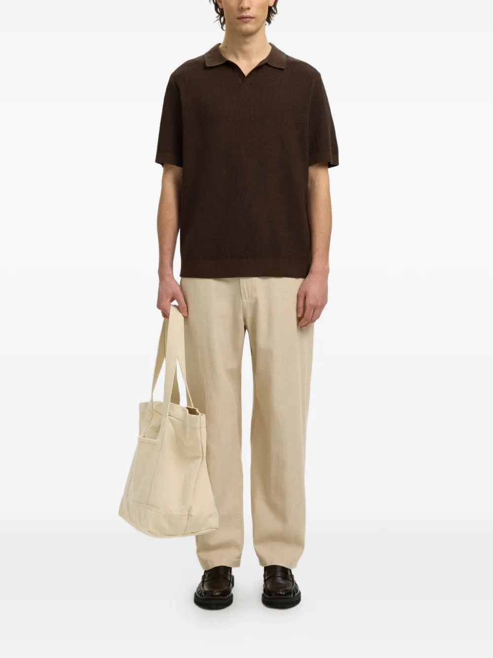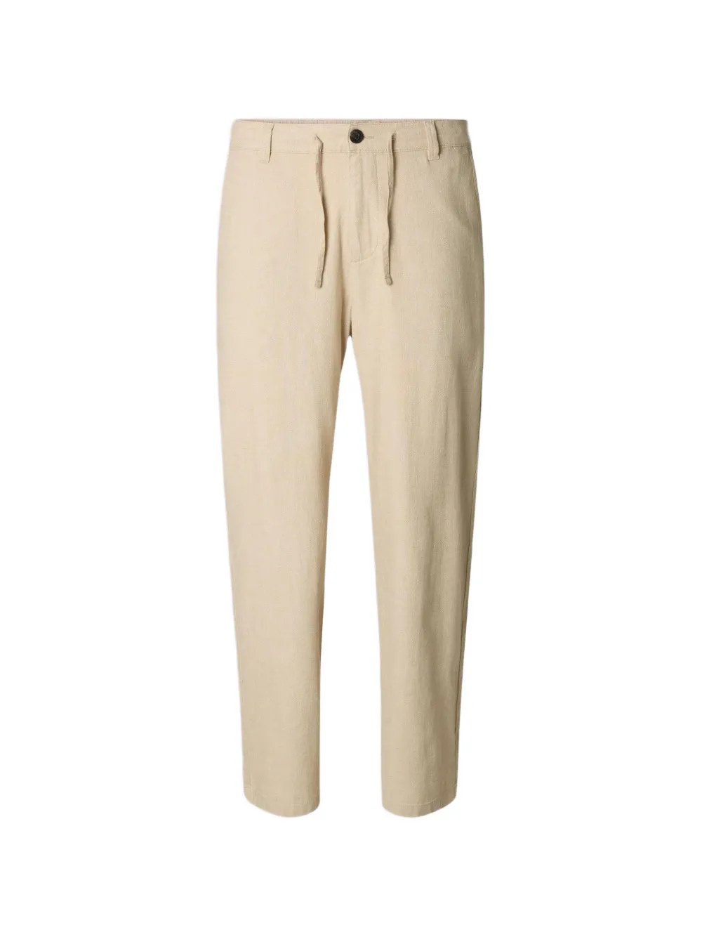 beige button detail drawstring waist loose fit back pockets side seam pockets