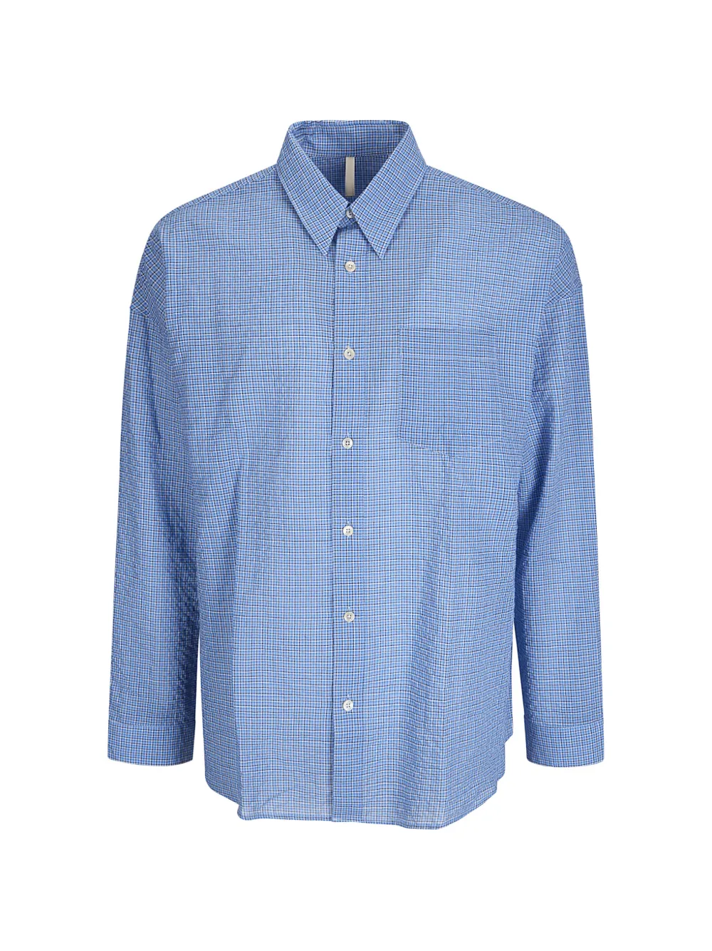 blue check pattern chest pocket button fastening long sleeves cotton