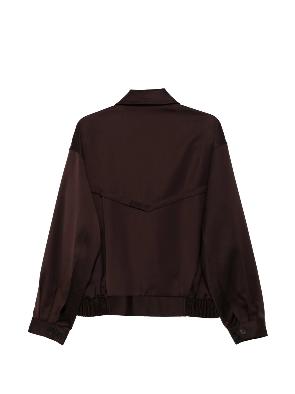 brown elasticated hem buttoned flap pockets long sleeves button fastening classic collar