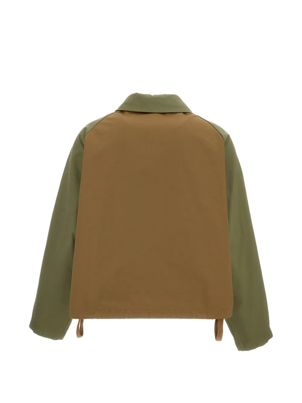 green button fastening patch pockets point collar long sleeves drawstring hem