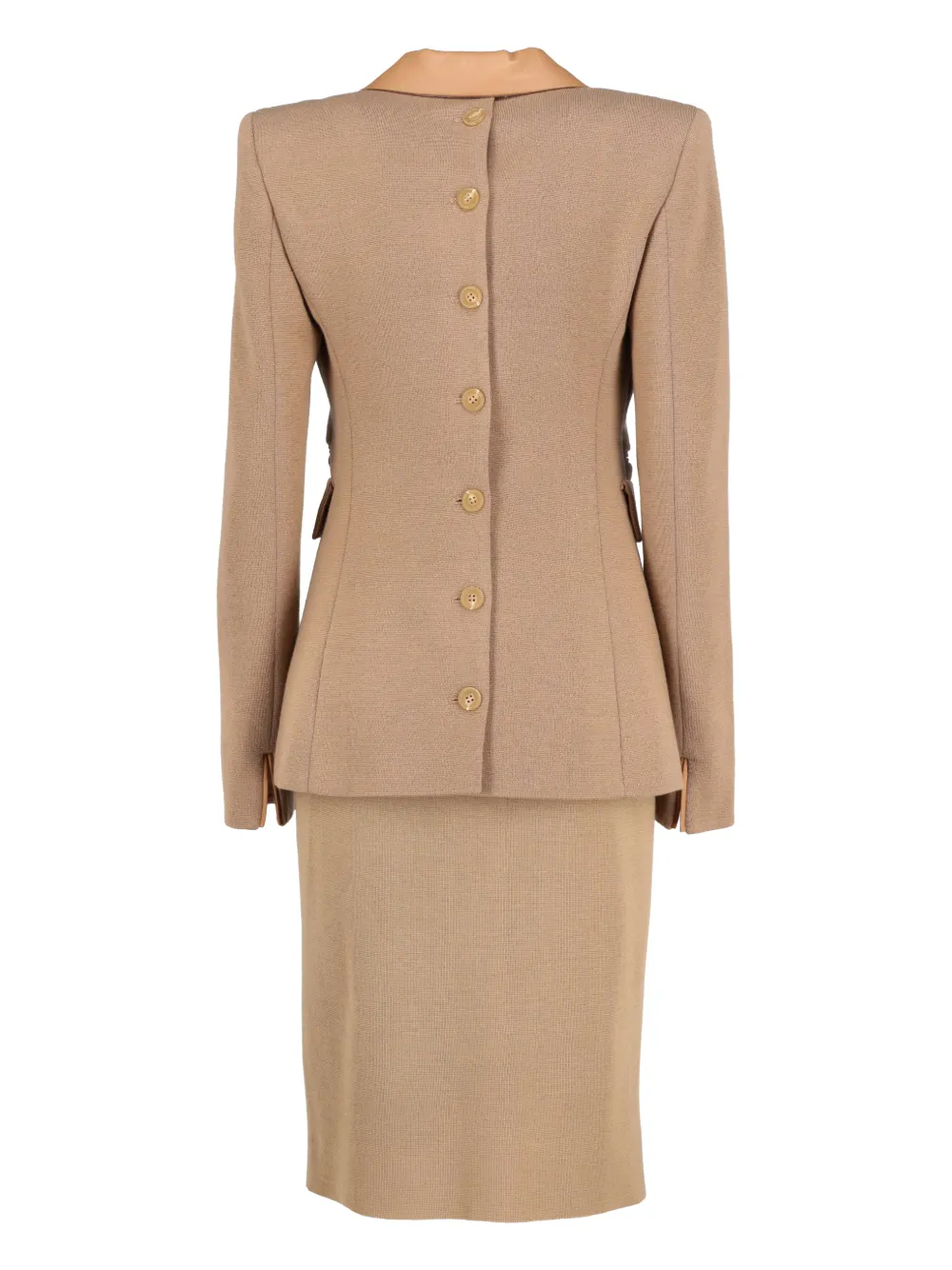 tailleur-jupe à empiècements en cuir