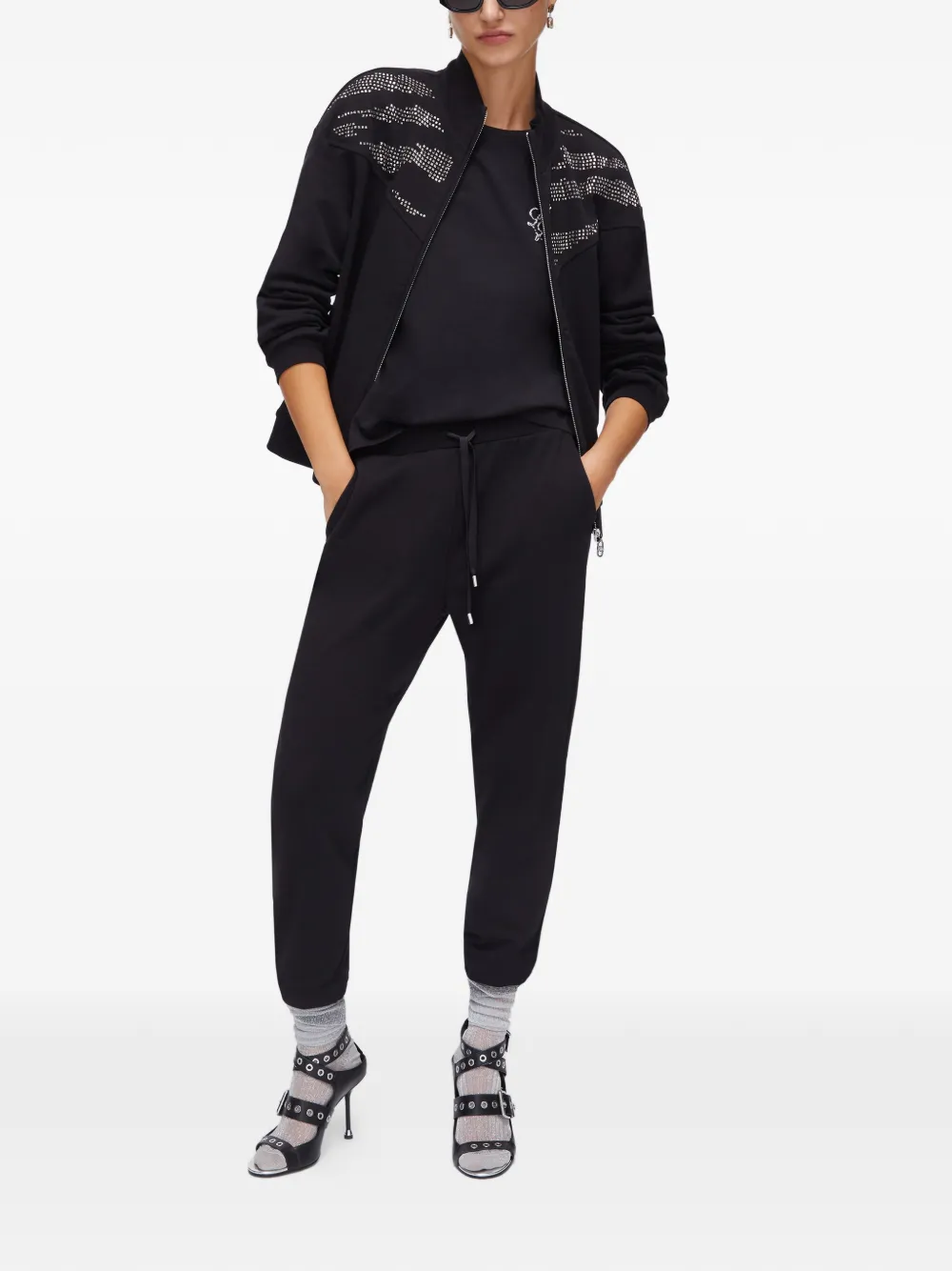 black elasticated waistband drawstring fastening two side pockets