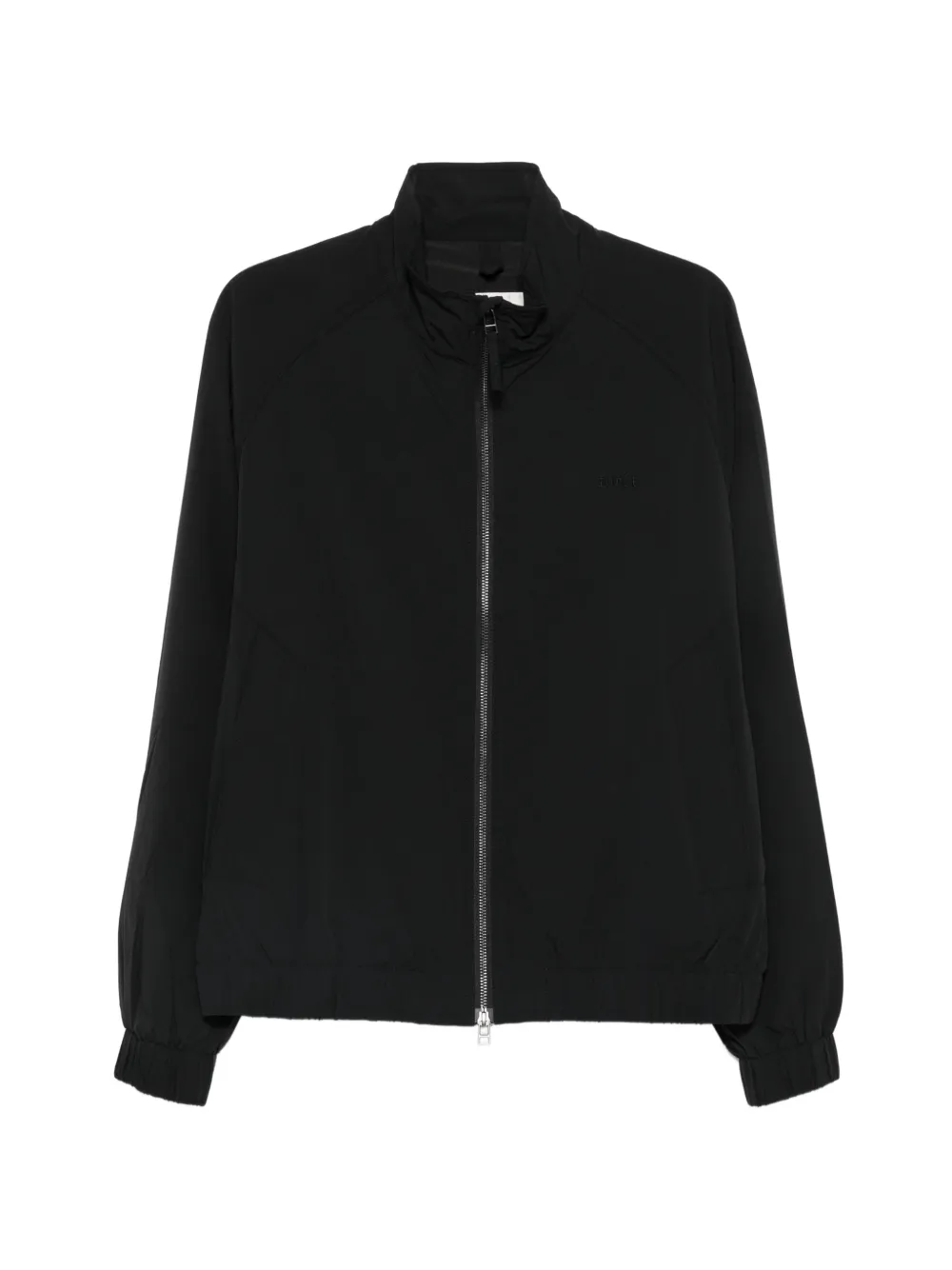 black high neck raglan sleeves front zip fastening elasticated hem and cuffs storm flap to the rear tonal logo embroidery