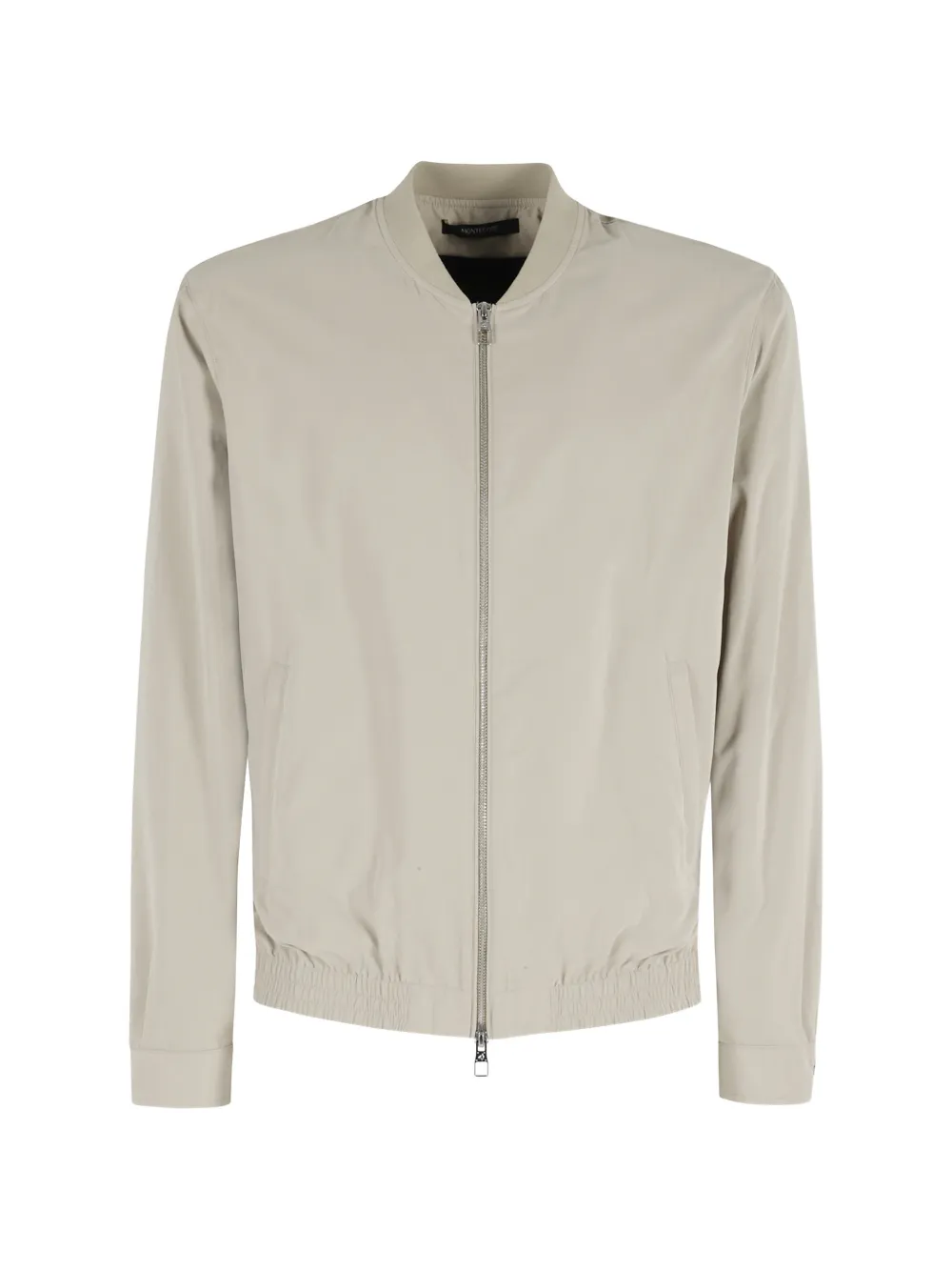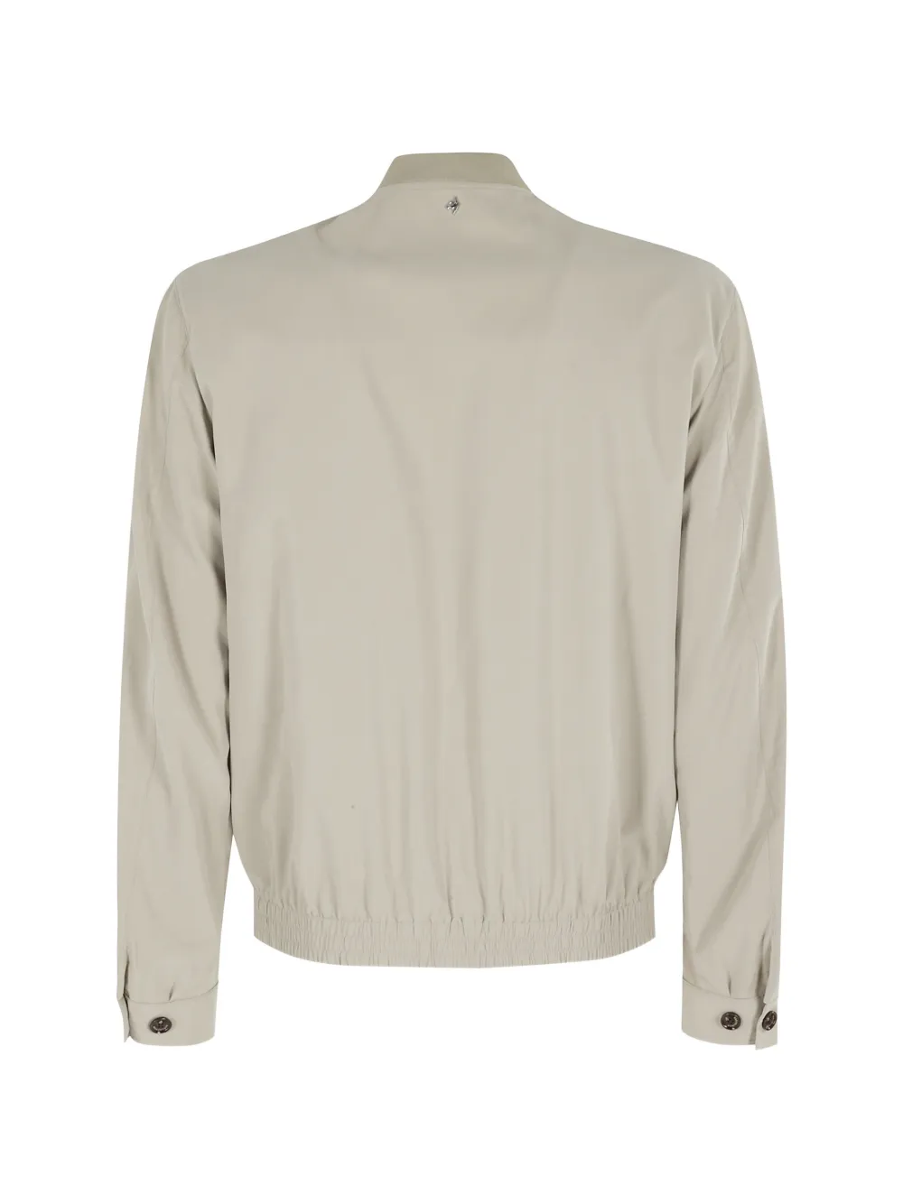 beige zip fastening crew neck front welt pocket buttoned cuffs ribbed hem