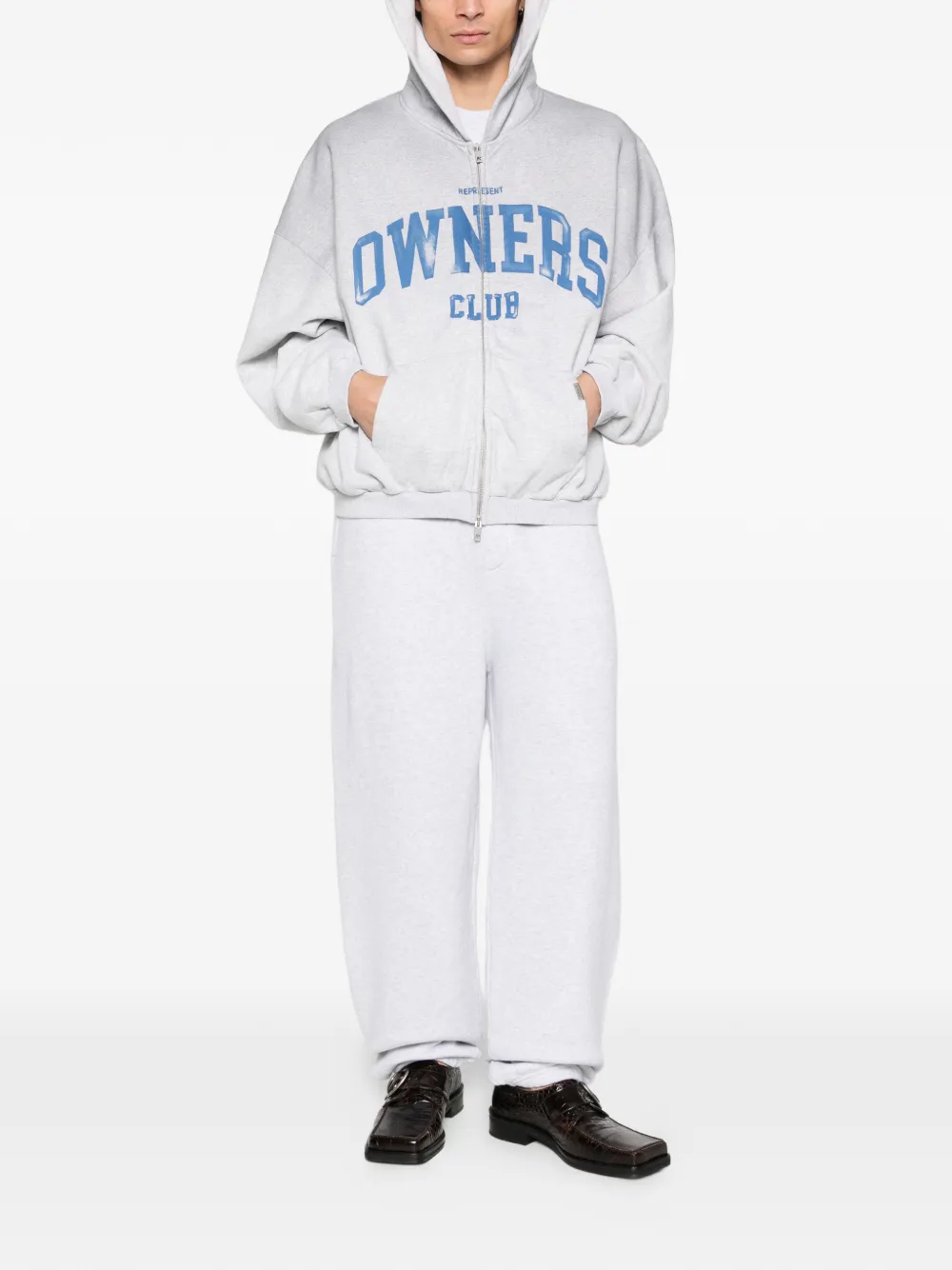 grey printed zip fastening front pockets long sleeves hooded