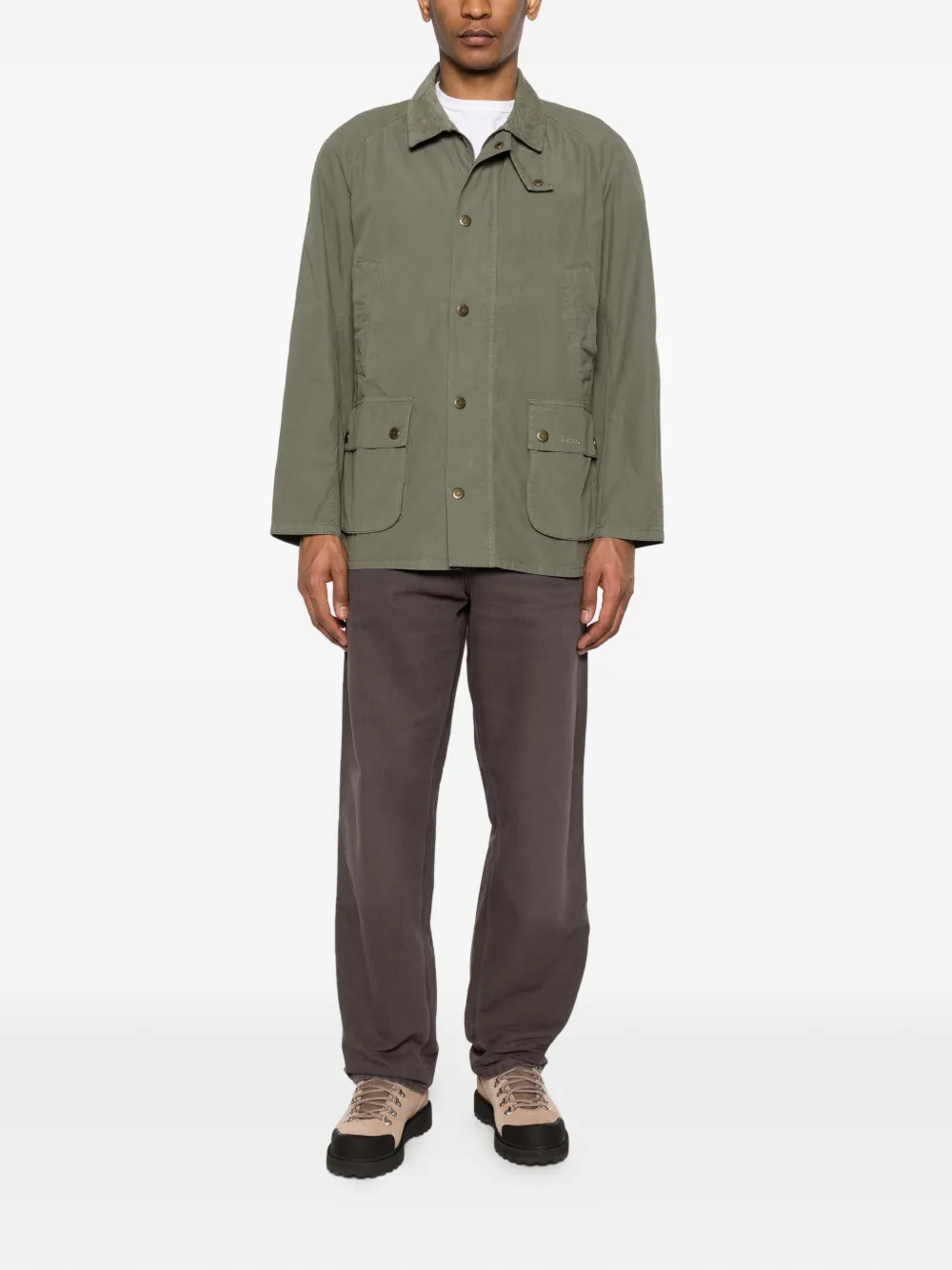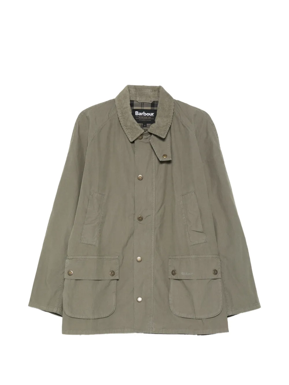 dusty olive green corduroy collar front button fastening buttoned flap pockets buttoned cuffs logo detail
