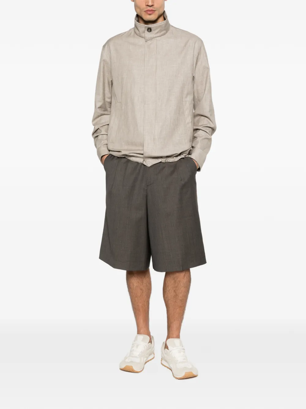 beige button and zip fastening side pockets high neck