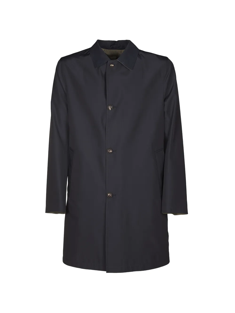 navy blue point collar button fastening