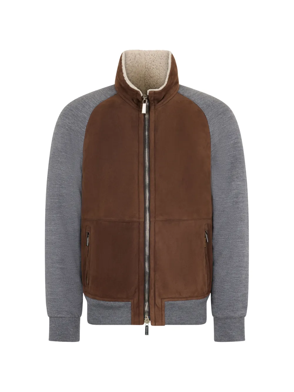 brown collar front zip-fastening ribbed hem ribbed cuffs zip-pockets