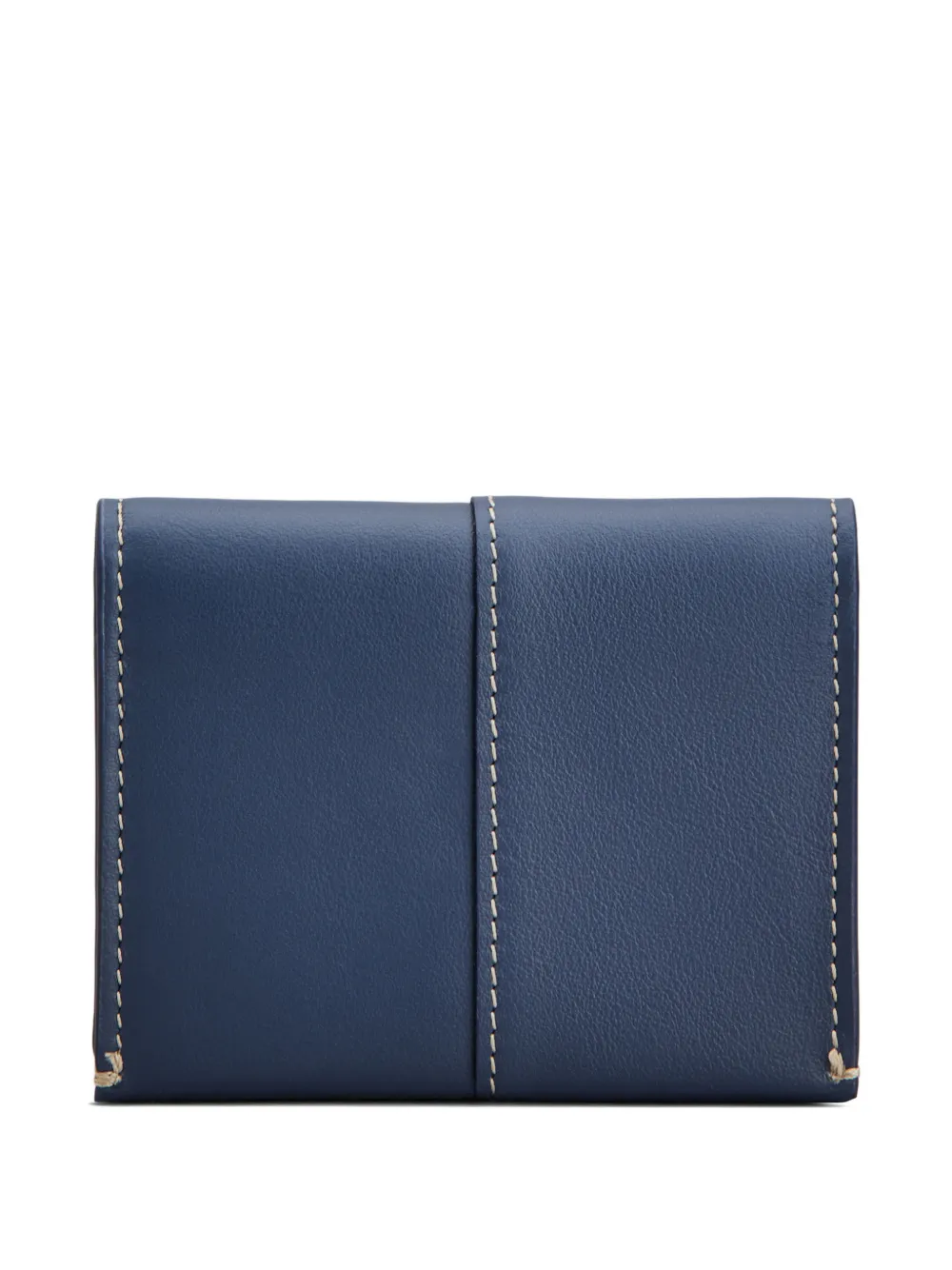 blue bi-fold design contrast stitching logo patch press-stud fastening internal card slots