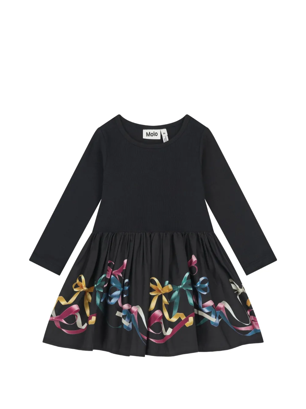 缎带印花长袖连衣裙