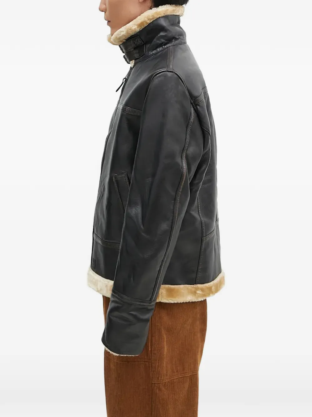 人造皮草领皮夹克