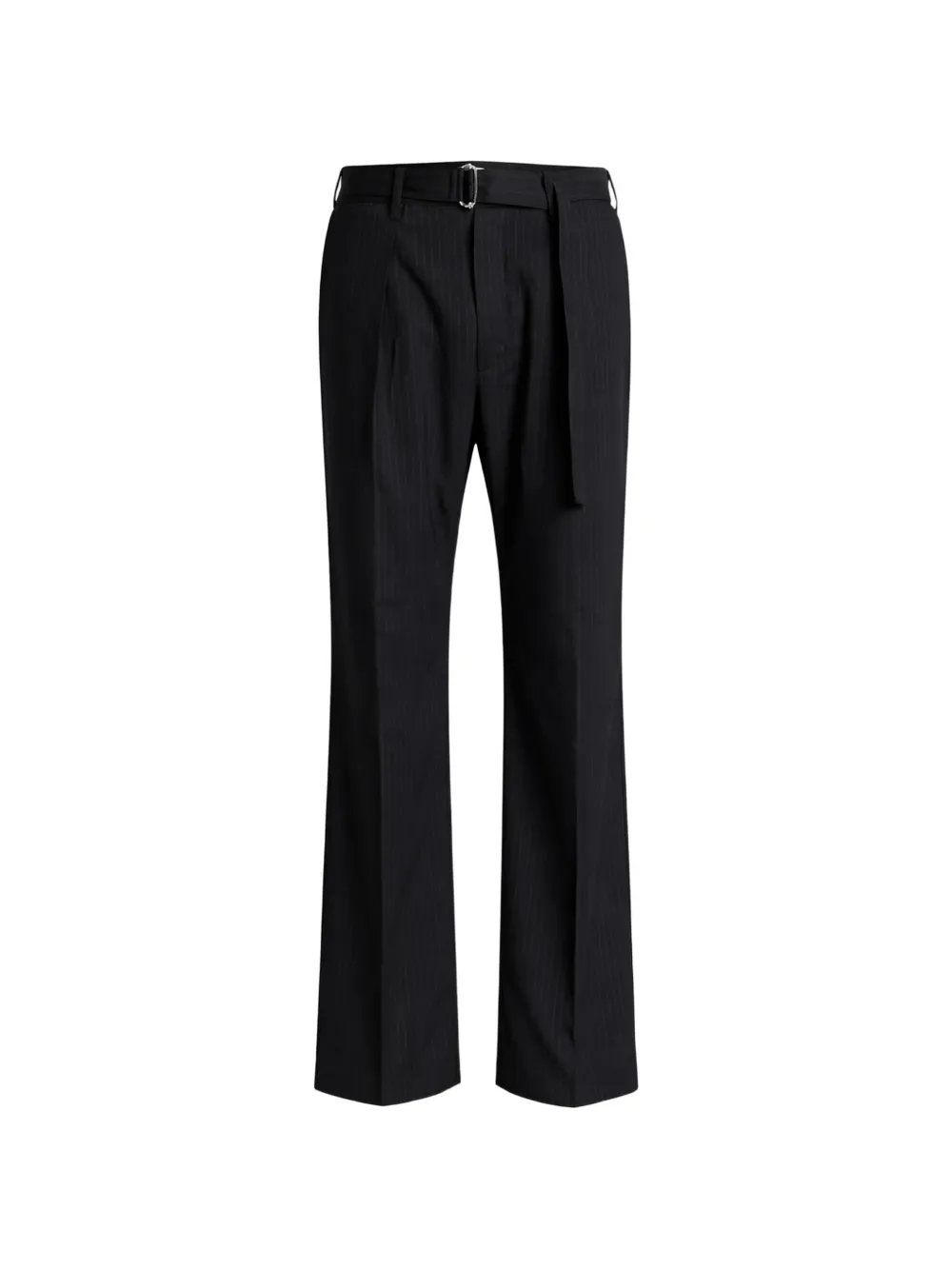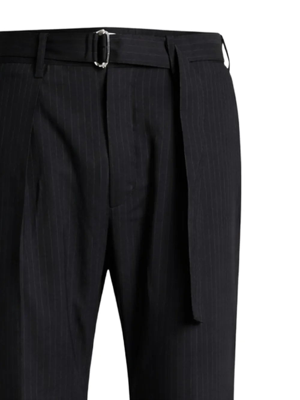 束腰细条纹长裤