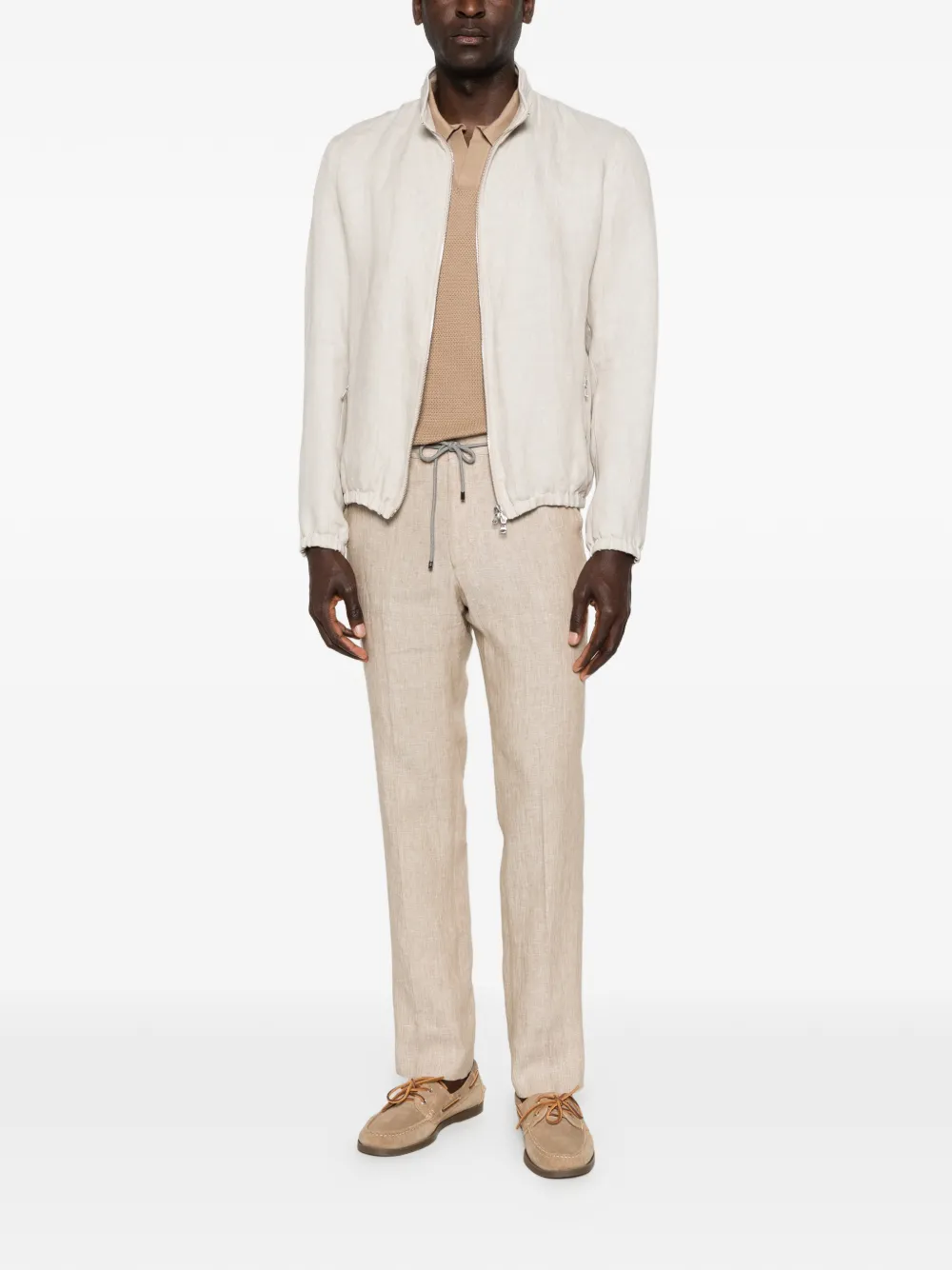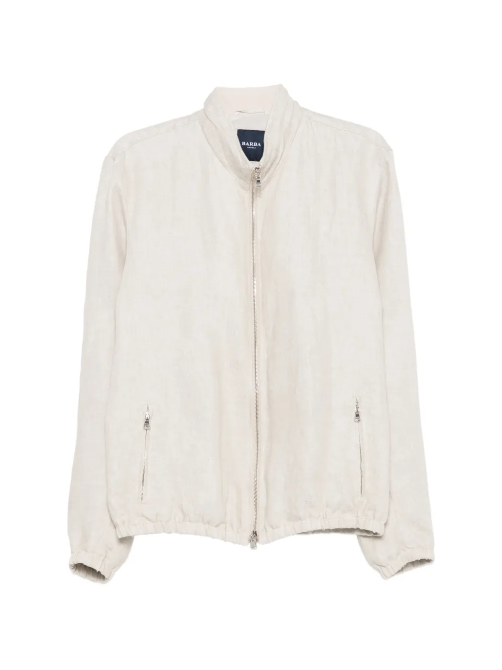 beige zip fastening zip pockets ribbed hem long sleeves high neck