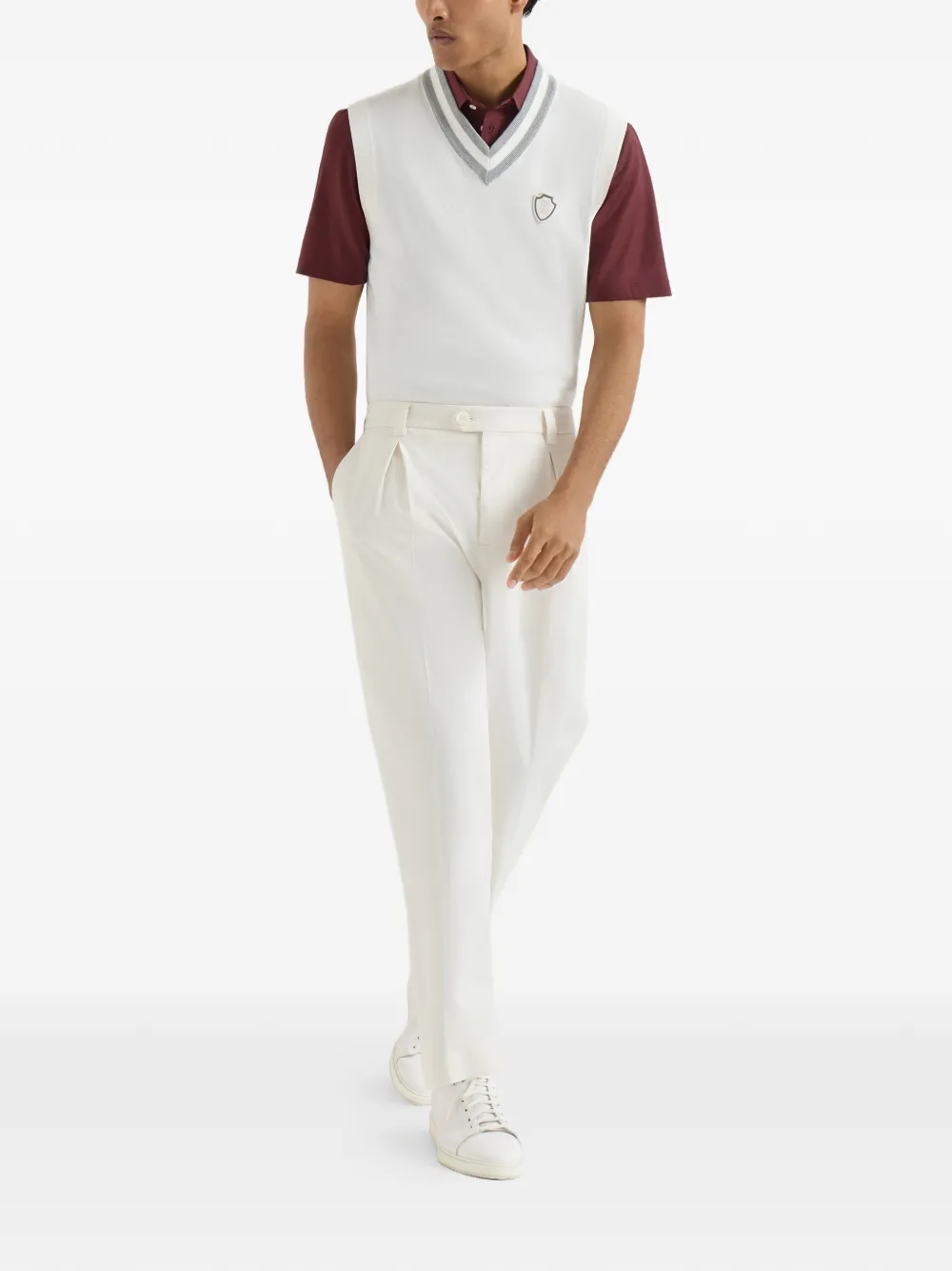 这款由美国皮马棉华达呢制成的长裤,以 Brunello Cucinelli 的优质面料映衬高尔夫运动的自然优雅。精选纤维打造出经久耐用、品质卓越的面料,并通过成衣染色工艺,呈现略带哑光的色彩效果。常规版型,裤腿有标志性的T恤固定带设计。